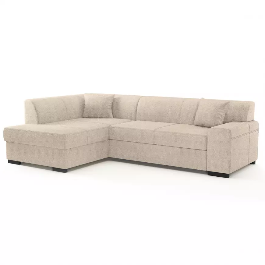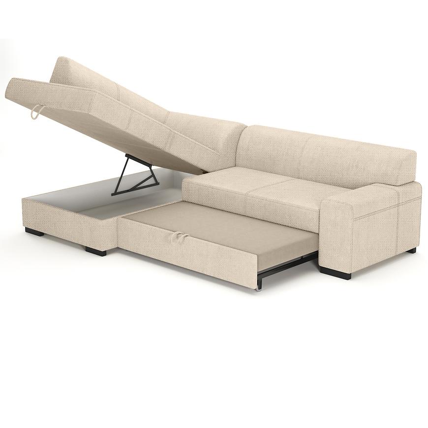 Minos Vardo to narożnik w kształcie litery L, który został wyposażony w funkcję spania, dzięki czemu z łatwością można przekształcić go w komfortowe miejsce do snu. Po rozłożeniu to okazjonalne miejsce do spania o wymiarach 195x135 cm zapewnia wystarczająco dużo miejsca na nocleg. Mechanizm rozkładania typu delfin sprawia, że rozłożenie narożnika jest szybkie i proste, a jednocześnie pozwala na zaoszczędzenie przestrzeni, co czyni go idealnym rozwiązaniem do mniejszych pomieszczeń.