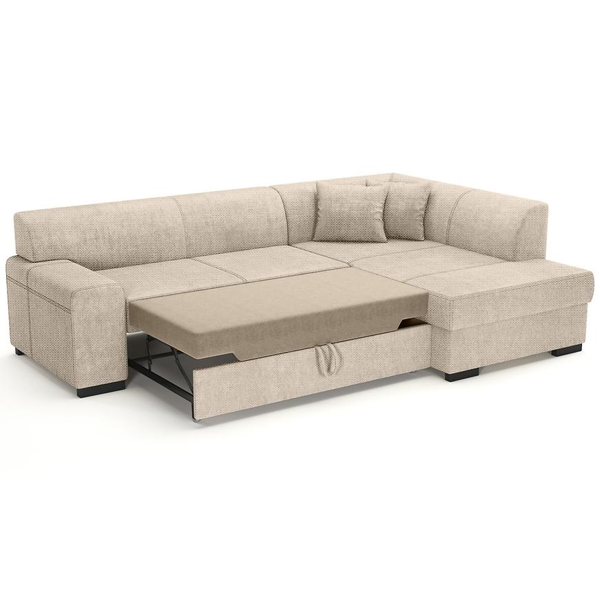 Minos Vardo to narożnik w kształcie litery L, który został wyposażony w funkcję spania, dzięki czemu z łatwością można przekształcić go w miejsce do snu. Po rozłożeniu to okazjonalne miejsce do spania o wymiarach 195x135 cm zapewnia wystarczająco dużo miejsca na nocleg. Mechanizm rozkładania typu delfin sprawia, że rozłożenie narożnika jest szybkie i proste, a jednocześnie pozwala na zaoszczędzenie przestrzeni, co czyni go idealnym rozwiązaniem do mniejszych pomieszczeń.