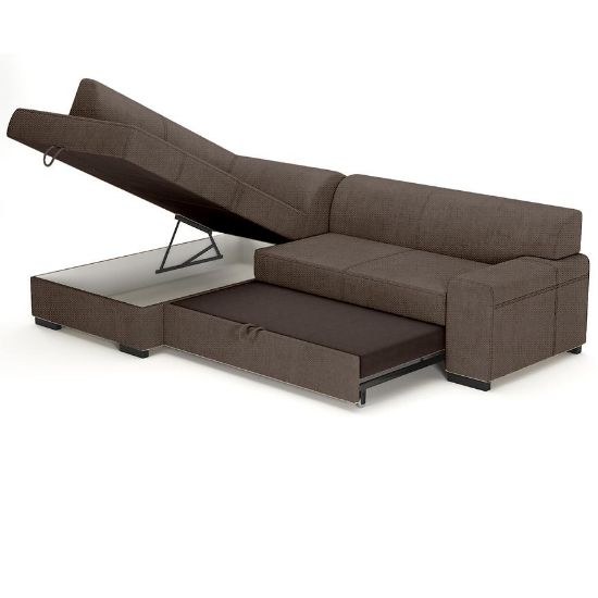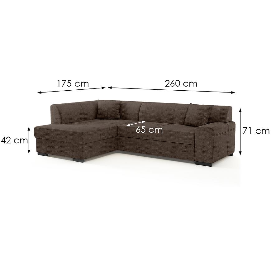 Minos Vardo to narożnik w kształcie litery L, który został wyposażony w funkcję spania, dzięki czemu z łatwością można przekształcić go w komfortowe miejsce do snu. Po rozłożeniu to okazjonalne miejsce do spania o wymiarach 195x135 cm zapewnia wystarczająco dużo miejsca na nocleg. Mechanizm rozkładania typu delfin sprawia, że rozłożenie narożnika jest szybkie i proste, a jednocześnie pozwala na zaoszczędzenie przestrzeni, co czyni go idealnym rozwiązaniem do mniejszych pomieszczeń.