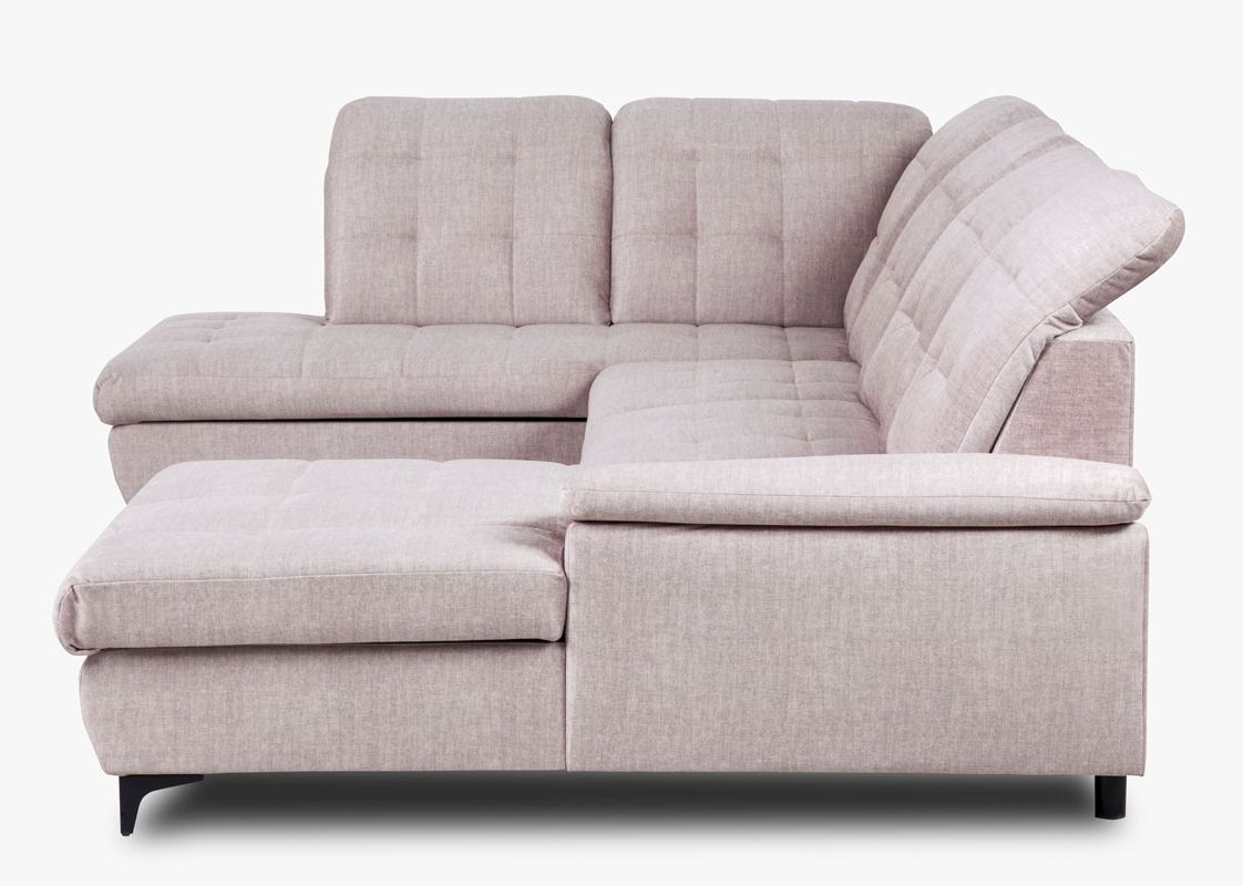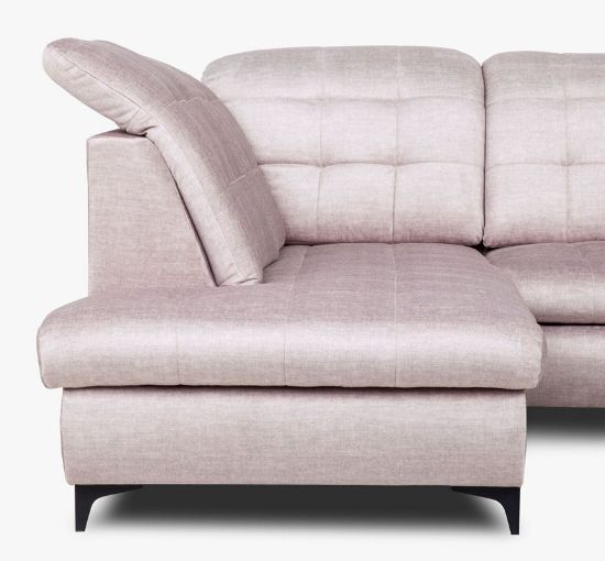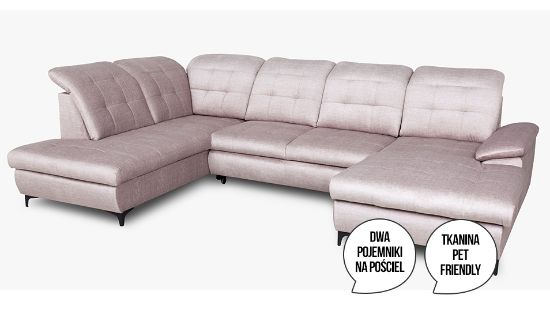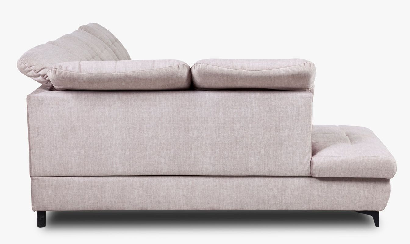 Moderno zachwyca nowoczesnym designem. Pikowania na siedzisku i oparciu, regulowane zagłówki oraz eleganckie, czarne metalowe nóżki nadają mu wyjątkowy charakter. Wykonany z tkaniny Vogue w uniwersalnym beżowym kolorze, doskonale wpasuje się w każde wnętrze. Tkanina Pet Friendly czyni narożnik idealnym rozwiązaniem dla właścicieli zwierząt.