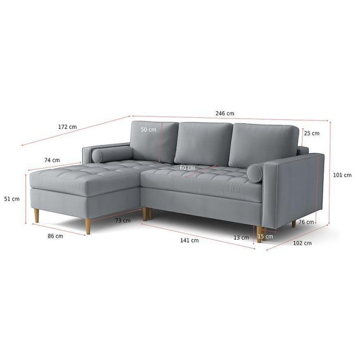 Narożnik Monza to elegancja, wygoda i funkcjonalność. Narożnik rozkładany to mebel idealny do wspólnego wypoczynku z rodziną i znajomymi, a także doskonale sprawdzi się w gabinetach. Nowoczesny narożnik w stylu skandynawskim z funkcją spania wyposażony jest w sprężyny faliste, a poduszki to dodatkowy komfort podczas wypoczynku lub oglądania telewizji. Kanapa narożna z pojemnikiem to idealne rozwiązanie, które świetnie sprawdzi się w każdym domu. Meble wypoczynkowe wyposażone w funkcję spania to doskonały wybór na długie lata, który zapewnia pełnie komfortu podczas wypoczynku.