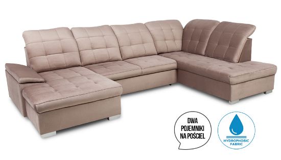 Jedną z kluczowych cech narożnika Nixon Lux jest jego funkcja spania, umożliwiająca szybkie i wygodne przekształcenie go w łóżko. Mechanizm ułatwiający rozkładanie sprawia, że transformacja mebla jest płynna i bezproblemowa. Dostępność modelu zarówno w opcji prawej, jak i lewej, daje swobodę wyboru i dostosowania mebla do indywidualnych preferencji oraz aranżacji pomieszczenia.