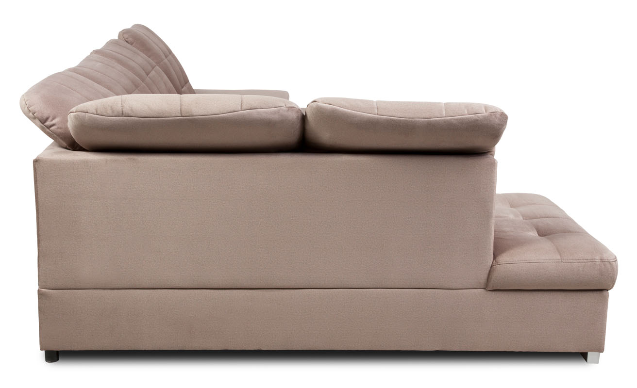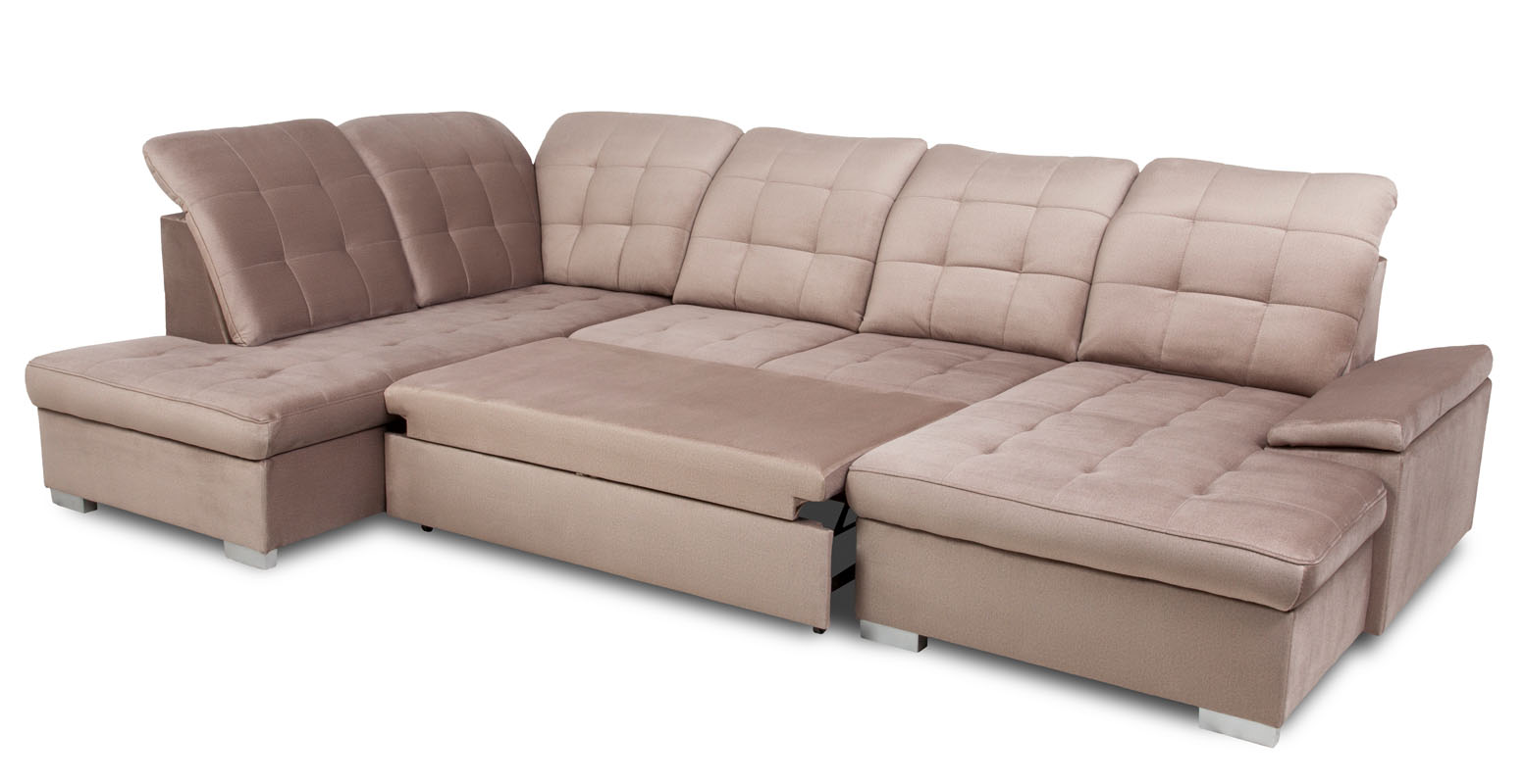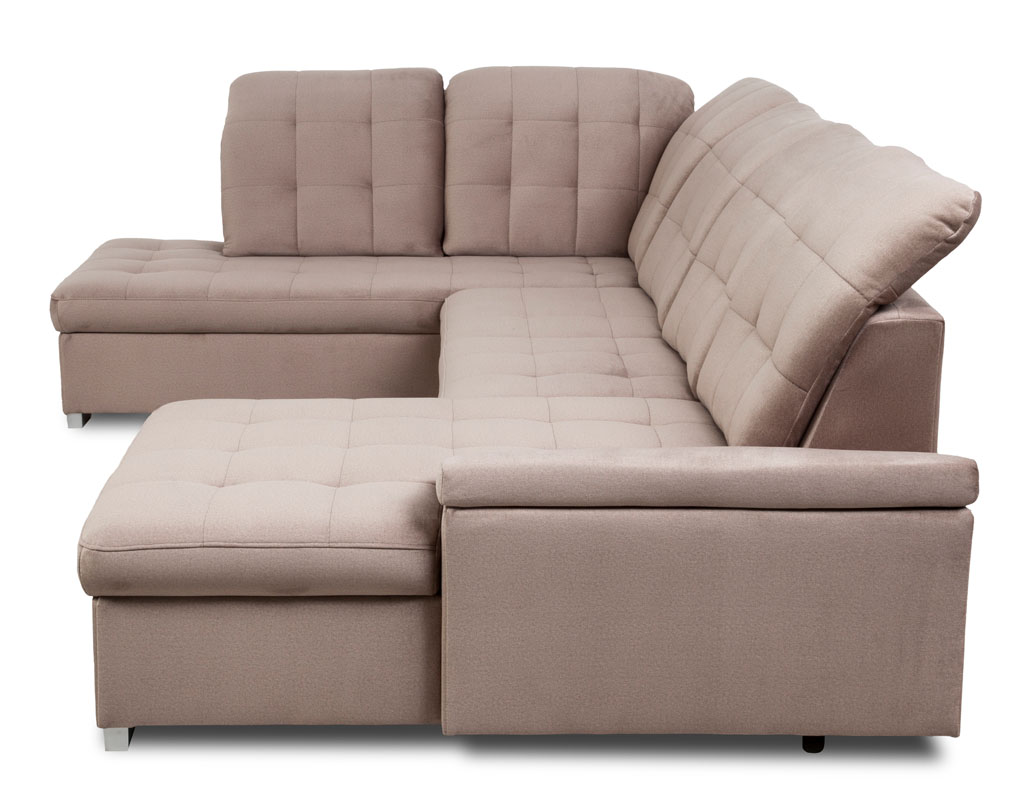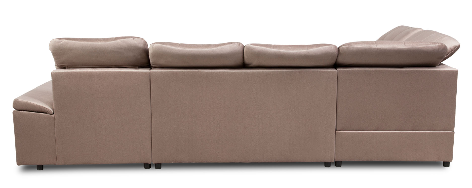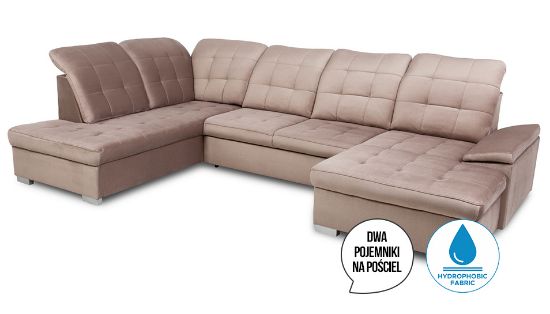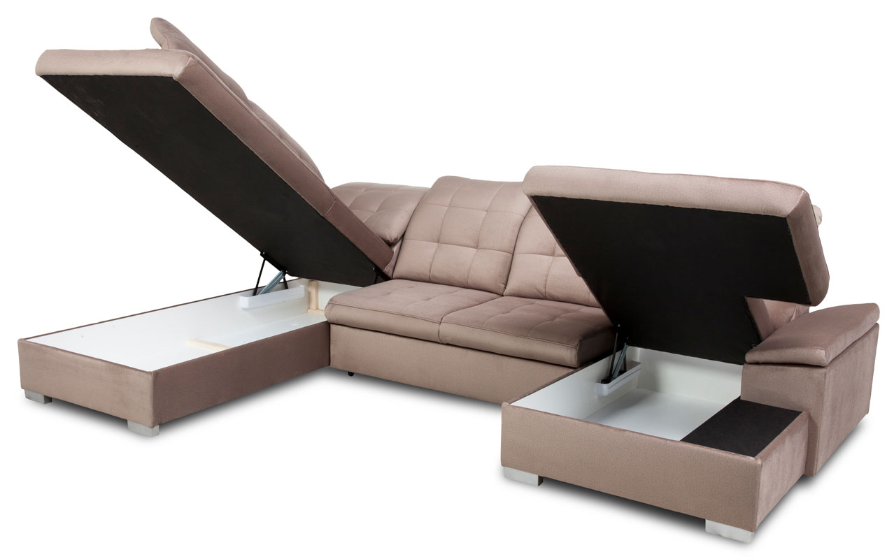Narożnik Nixon Lux został wyposażony w dwa pojemniki na pościel umieszczone w otomanach mebla, co umożliwia sprytne wykorzystanie przestrzeni i przechowywanie niezbędnych dodatków w jednym miejscu. Oparcie narożnika stanowią przymocowane na stałe poduszki, z których trzy posiadają stopniową regulację w górnej części, pełniącą funkcję zagłówka. To rozwiązanie umożliwia dostosowanie pozycji siedzącej do własnych preferencji, podnosząc tym samym komfort wypoczynku.