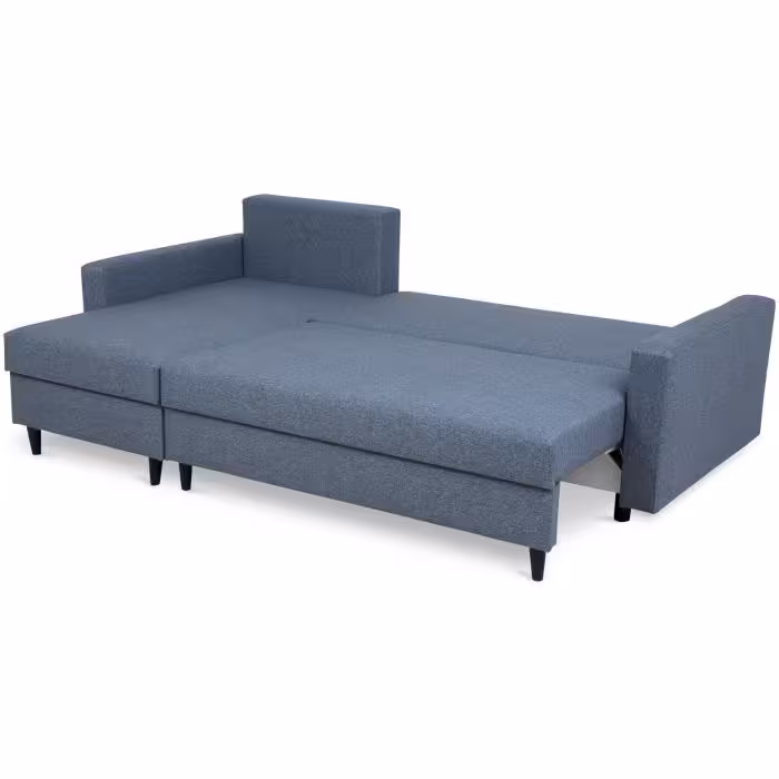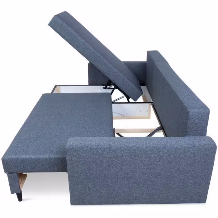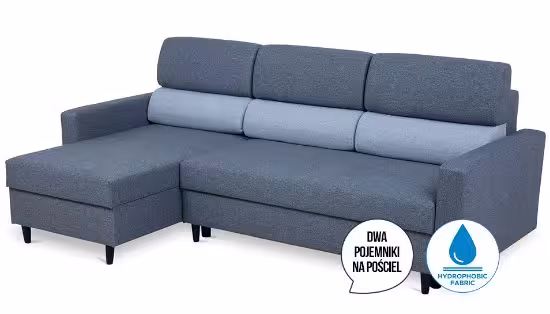 Sposób rozkładania DL to szybki i prosty sposób - wystarczy podnieść siedzisko do góry i przesunąć do przodu, a w miejsce siedziska kładziemy oparcie. Po rozłożeniu powierzchnia spania wynosi 124x197cm. Kanapa posiada pojemnik na pościel, w którym zmieścimy kołdrę i poduszkę zapewniając porządek w pomieszczeniu.