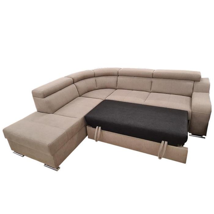 Narożnik Oscar z funkcją spania został pokryty tkaniną. Prostotę i łatwość użytkowania gwarantuje system rozkładania typu delfin. Jest to szybki, prosty i wygodny sposób rozkładania. Jest jednym z najbardziej popularnych systemów rozkładania, który jest wykorzystywany w narożnikach. Po rozłożeniu to okazjonalne miejsce do spania o wymiarach 203x126 cm. Mebel posiada pojemnik, do którego można schować pościel, dodatkowe koce czy też poduszki. W siedzisku zastosowano sprężynę bonell i falistą, która dostosowuje się do ciężaru i kształtu ciała, zapewniając tym samym wysoki komfort siedzenia. Ten niepowtarzalny mebel wypoczynkowy stworzono z myślą o funkcjonalności i eleganckim wyglądzie. Narożnik dostępny w wersji prawostronnej i lewostronnej.