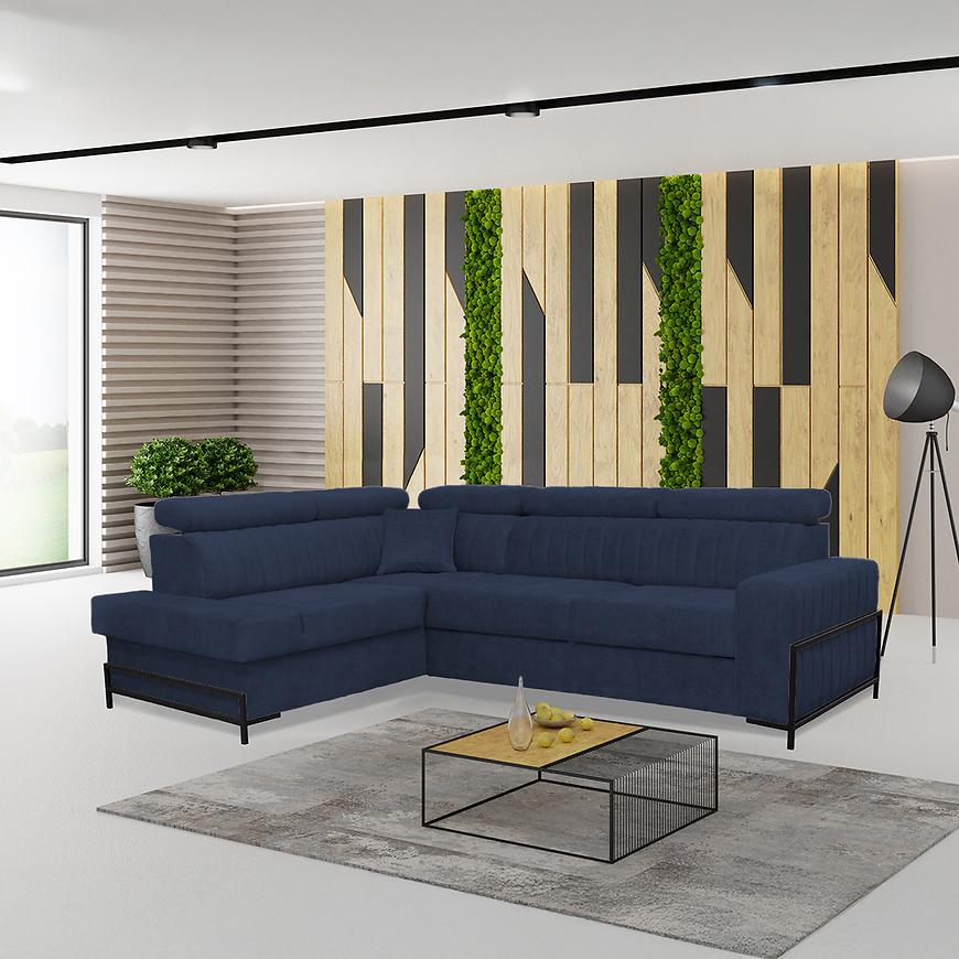 Narożnik z funkcją spania Oslo Molly 79 lewostronny to elegancki i funkcjonalny mebel, który doskonale sprawdzi się w nowoczesnych wnętrzach. Jego granatowa tapicerka nadaje pomieszczeniu głębi i stylu, a lewostronna konfiguracja świetnie wpasuje się w różne układy salonów.