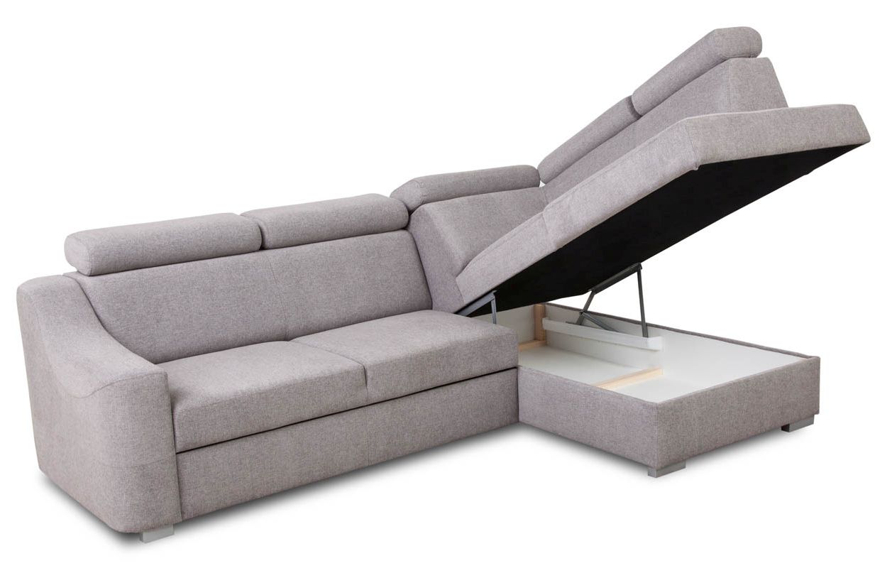 Narożnik Parma wyposażony jest także w praktyczny pojemnik na pościel, który pozwala na wygodne przechowywanie kołder, poduszek czy koców. To rozwiązanie jest niezwykle przydatne, zwłaszcza w mniejszych mieszkaniach, gdzie liczy się każdy centymetr przestrzeni.