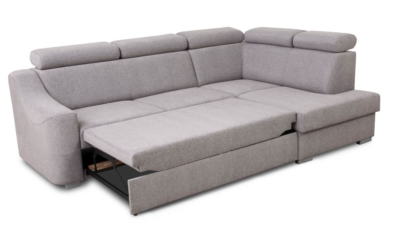 Jednym z kluczowych atutów narożnika Parma jest funkcja spania, która pozwala na szybkie przekształcenie go w wygodne łóżko. Dzięki zastosowanemu mechanizmowi rozkładania typu Delfin, całość jest niezwykle prosta i intuicyjna. Wystarczy wysunąć szufladę spod siedziska i podciągnąć leżący element uzupełniający powierzchnię spania, aby uzyskać wygodne miejsce do snu o wymiarach 130x197 cm. Mechanizm ten sprawia, że rozkładanie narożnika jest łatwe i nie wymaga dużego wysiłku.