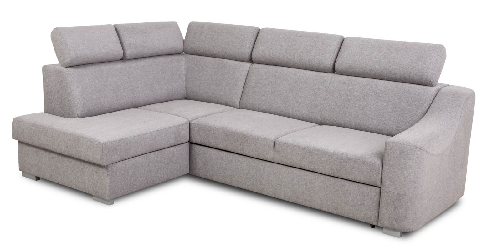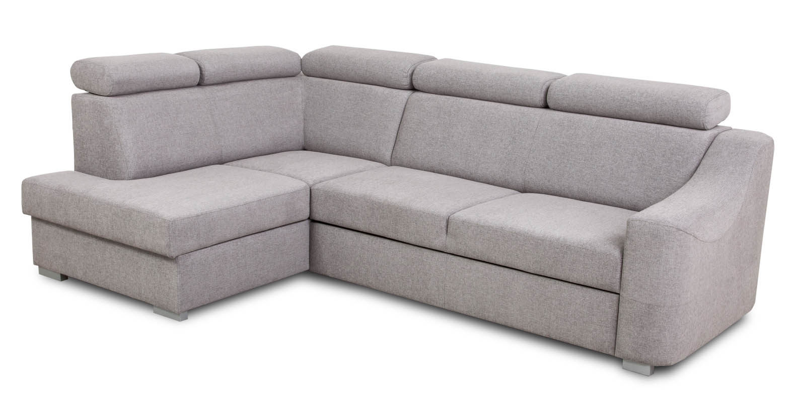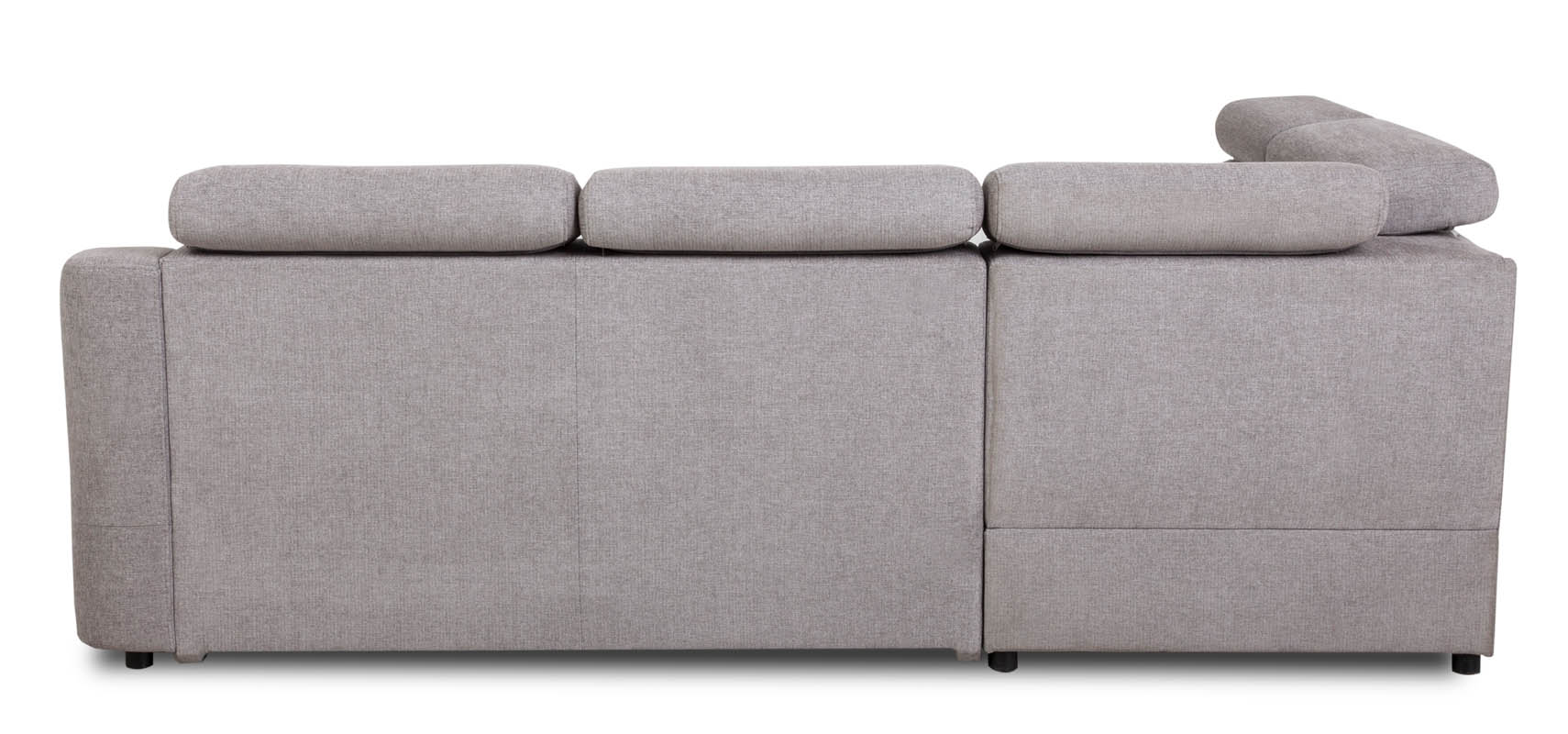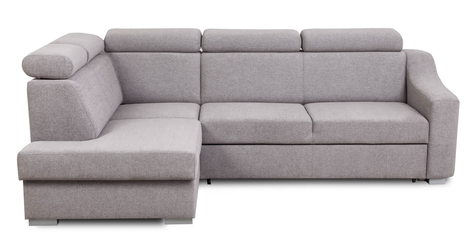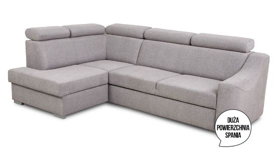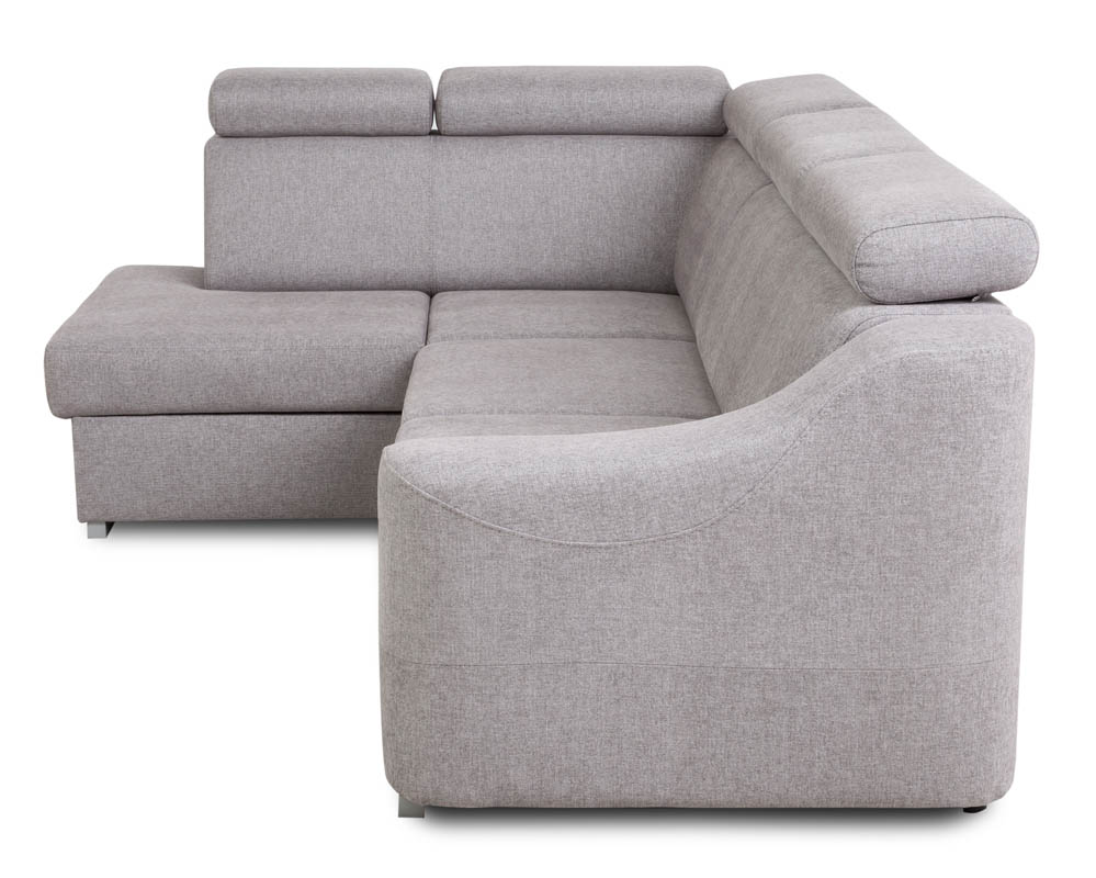 Parma jest dostępna zarówno w opcji prawej, jak i lewej, co pozwala na dopasowanie narożnika do układu pomieszczenia i indywidualnych potrzeb użytkownika. Tapicerka wykonana z tkaniny Sorella w kolorze jasny popiel dodaje wnętrzu lekkości i subtelności, jednocześnie będąc łatwą do utrzymania w czystości.