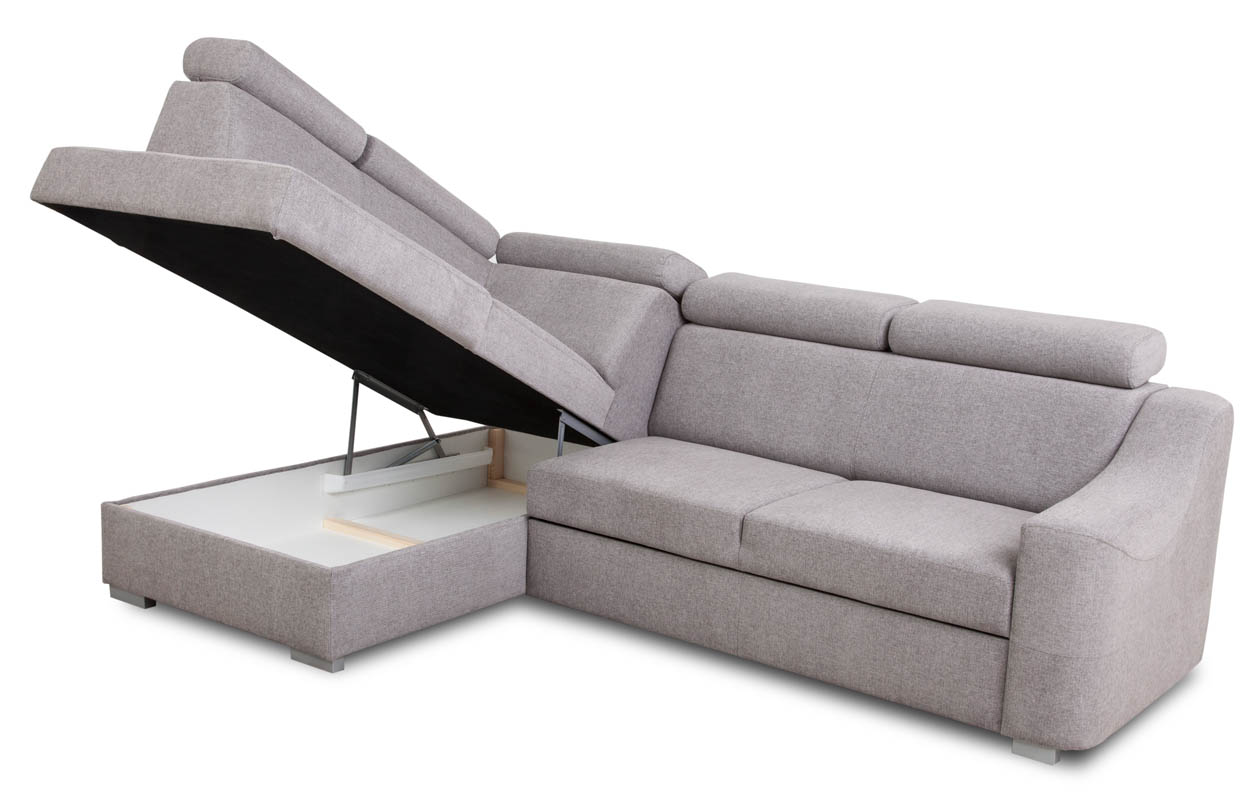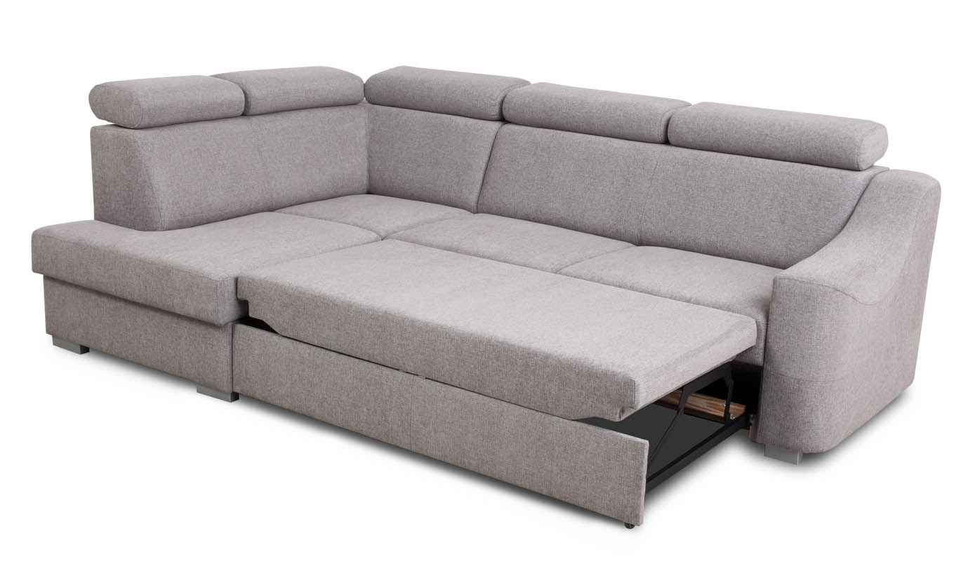 Jedną z kluczowych cech narożnika Parma jest funkcja spania, która sprawia, że mebel doskonale sprawdza się nie tylko jako miejsce do wypoczynku w ciągu dnia, ale również jako wygodne łóżko na noc. Rozkładanie narożnika jest niezwykle proste dzięki mechanizmowi typu Delfin. Wystarczy wysunąć szufladę spod siedziska i podciągnąć leżący element uzupełniający powierzchnię spania, aby w kilka chwil stworzyć komfortowe miejsce do snu o wymiarach 130x197 cm.