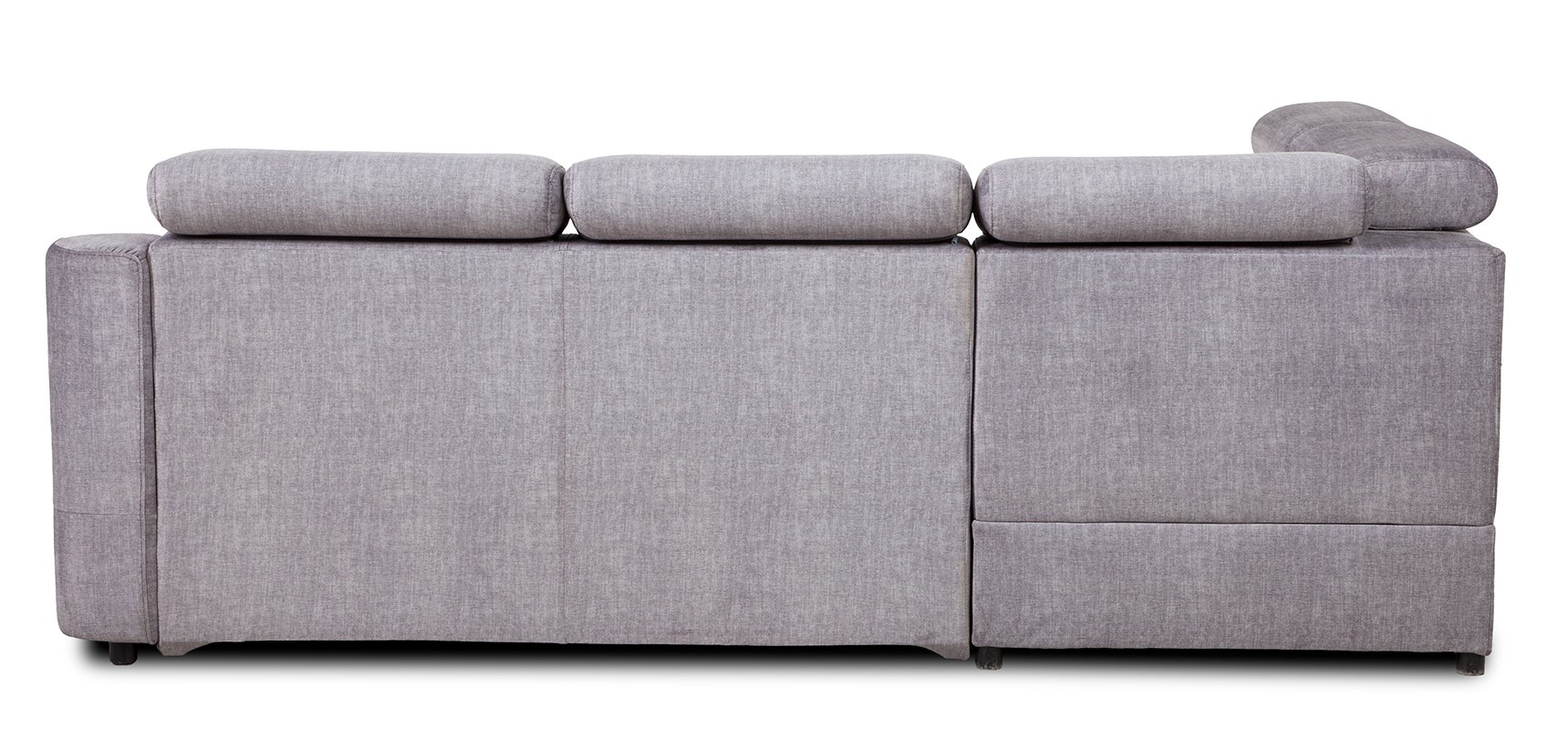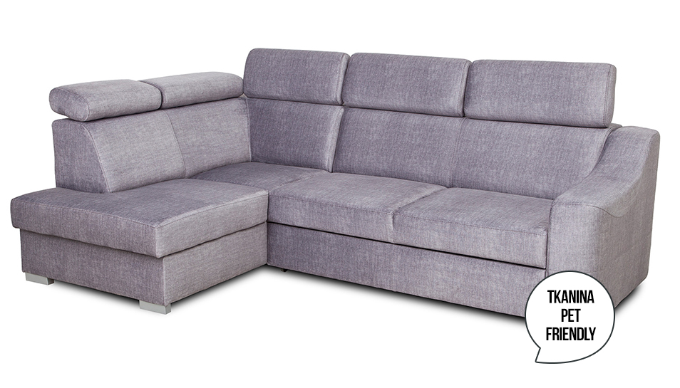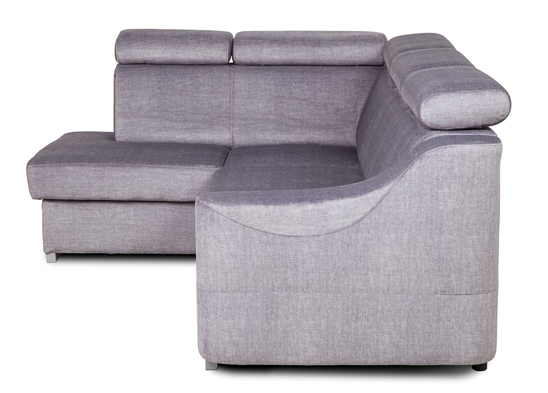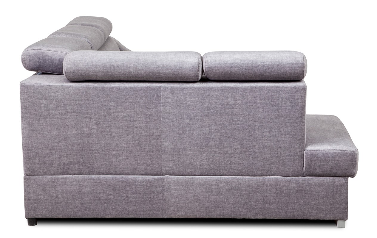 Oparcie wykonano z pianki T20, która jest nieco bardziej miękka. Dzięki temu plecy mają komfortowe podparcie, bez efektu nadmiernej twardości. Dodatkowo narożnik wyposażono w pięć regulowanych zagłówków. Możliwość zmiany kąta nachylenia pozwala dopasować wysokość podparcia do wzrostu użytkownika – to szczególnie istotne podczas oglądania telewizji lub czytania.
