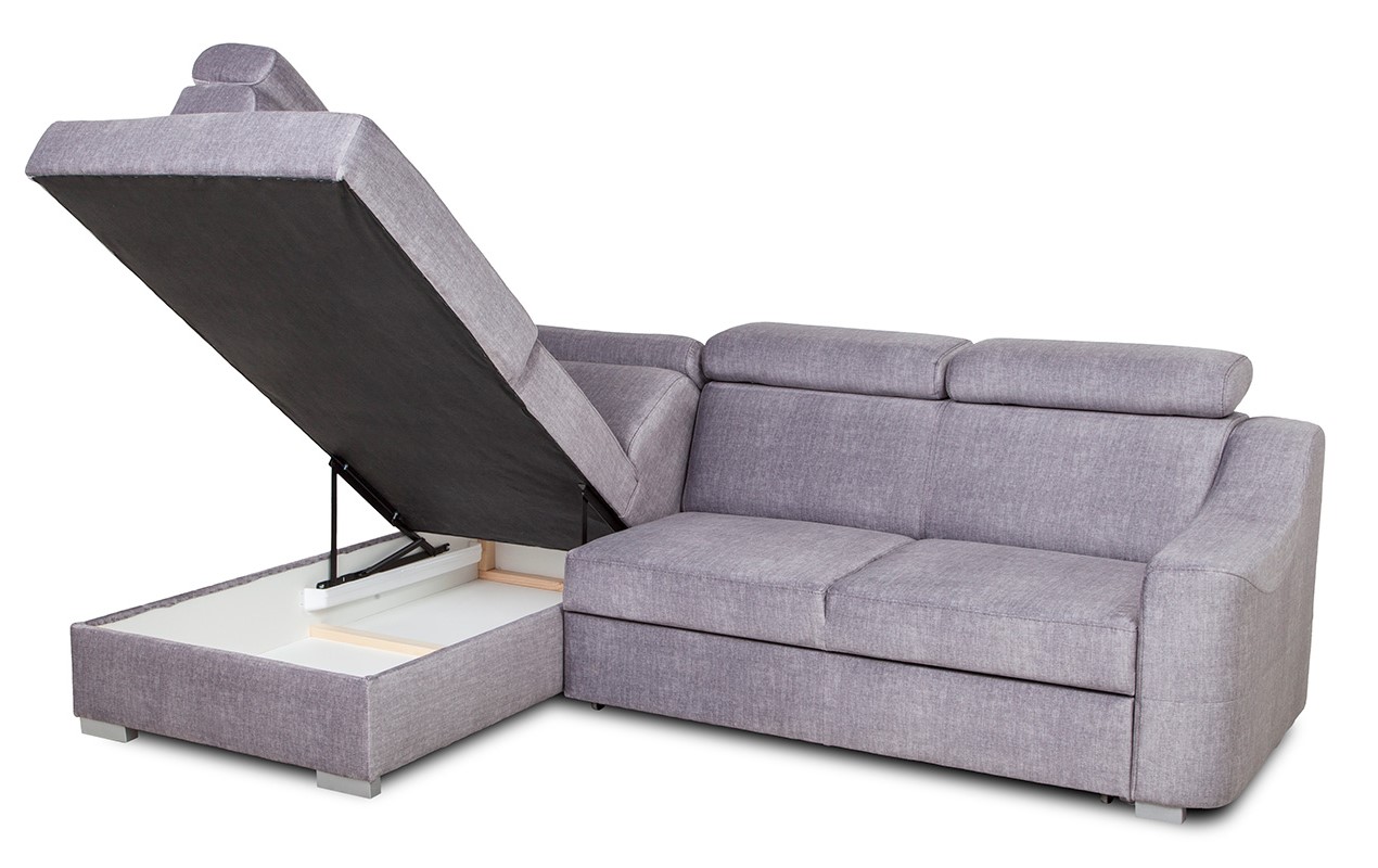 Pojemnik na pościel i detale wykończenia – narożnik do nowoczesnego salonu