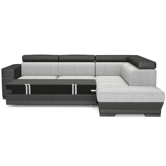 Narożnik Parys z funkcją spania został pokryty tkaniną i ekoskórą. Prostotę i łatwość użytkowania gwarantuje system rozkładania typu delfin. Jest to szybki, prosty i wygodny sposób rozkładania. Jest jednym z najbardziej popularnych systemów rozkładania, który jest wykorzystywany w narożnikach. Po rozłożeniu to okazjonalne miejsce do spania o wymiarach 202x122 cm. Mebel posiada pojemnik, do którego można schować pościel, dodatkowe koce czy też poduszki. W siedzisku zastosowano sprężynę bonell i falistą, która dostosowuje się do ciężaru i kształtu ciała, zapewniając tym samym wysoki komfort siedzenia. Ten niepowtarzalny mebel wypoczynkowy stworzono z myślą o funkcjonalności i eleganckim wyglądzie. Narożnik dostępny w wersji prawostronnej i lewostronnej.