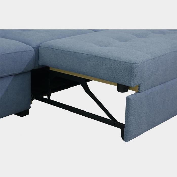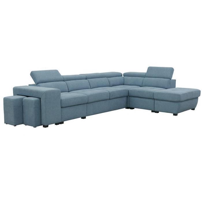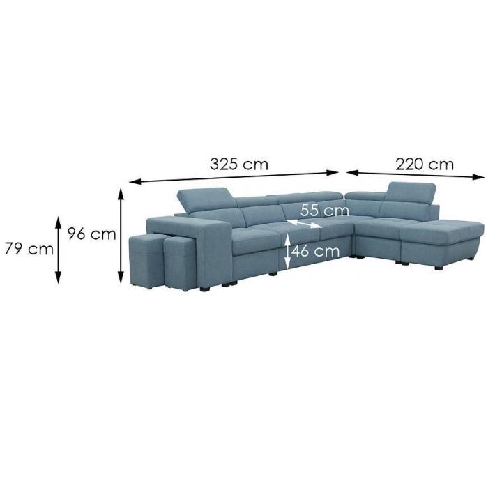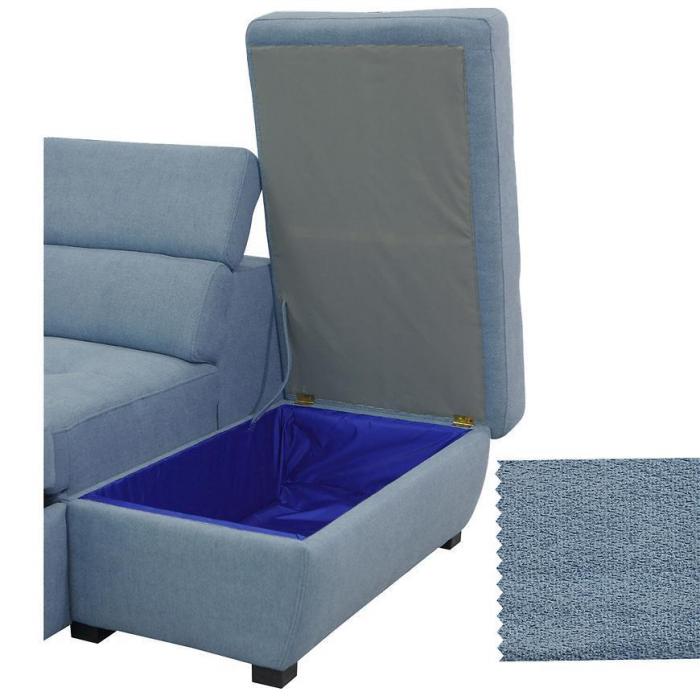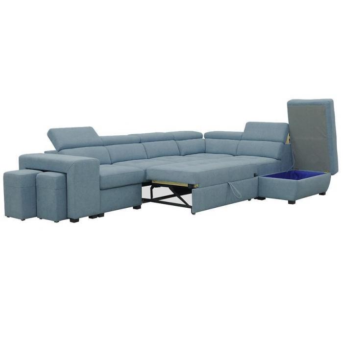 Narożnik Positano został pokryty tkaniną z funkcją spania. Prostotę i łatwość użytkowania gwarantuje automat ułatwiający rozkładanie i system rozkładania typu Delfin. Jest to szybki, prosty i wygodny sposób rozkładania. Jest jednym z najbardziej popularnych systemów rozkładania, który jest wykorzystywany w narożnikach. Polega on na wysunięciu spod siedziska narożnika, wbudowanej tam szuflady i podniesieniu, zamontowanego wewnątrz, stelaża za pomocą uchwytu. Po rozłożeniu to okazjonalne miejsce do spania o wymiarach 184x125 cm. Meble posiada pojemnik, do którego można schować pościel, dodatkowe koce czy też poduszki. Wysokość wynosi 79-96 cm. W siedzisku zastosowano sprężynę sprężynę bonell + sprężyna falista, która dostosowuje się do ciężaru i kształtu ciała, zapewniając tym samym wysoki komfort siedzenia. Ten niepowtarzalny mebel wypoczynkowy stworzono z myślą o funkcjonalności i eleganckim wyglądzie.