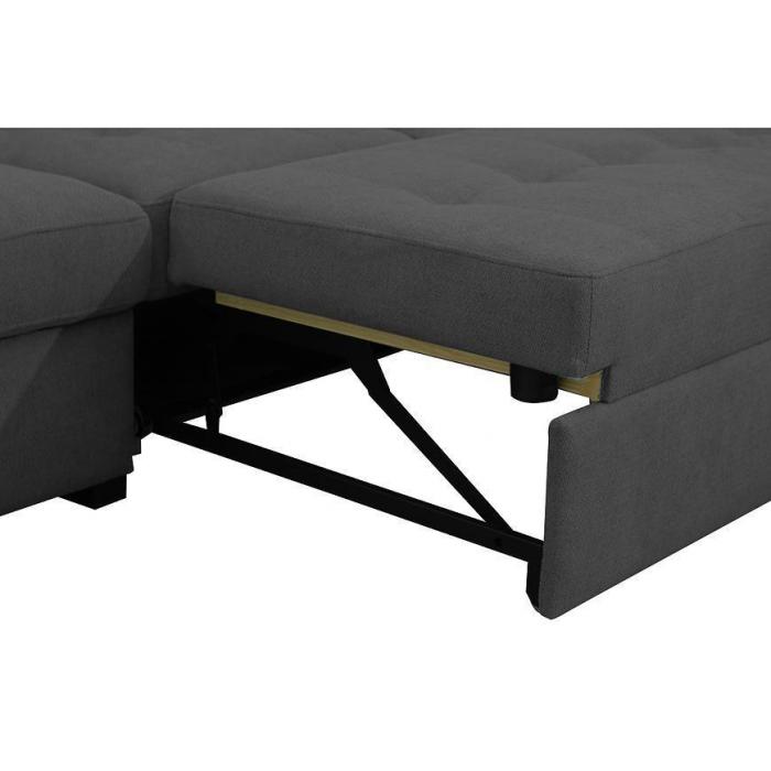 Narożnik Positano został pokryty tkaniną z funkcją spania. Prostotę i łatwość użytkowania gwarantuje automat ułatwiający rozkładanie i system rozkładania typu Delfin. Jest to szybki, prosty i wygodny sposób rozkładania. Jest jednym z najbardziej popularnych systemów rozkładania, który jest wykorzystywany w narożnikach. Polega on na wysunięciu spod siedziska narożnika, wbudowanej tam szuflady i podniesieniu, zamontowanego wewnątrz, stelaża za pomocą uchwytu. Po rozłożeniu to okazjonalne miejsce do spania o wymiarach 184x125 cm. Meble posiada pojemnik, do którego można schować pościel, dodatkowe koce czy też poduszki. Wysokość wynosi 79-96 cm.W siedzisku zastosowano sprężynę sprężynę bonell + sprężyna falista, która dostosowuje się do ciężaru i kształtu ciała, zapewniając tym samym wysoki komfort siedzenia. Ten niepowtarzalny mebel wypoczynkowy stworzono z myślą o funkcjonalności i eleganckim wyglądzie.