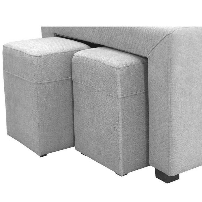Narożnik Positano został pokryty tkaniną z funkcją spania. Prostotę i łatwość użytkowania gwarantuje automat ułatwiający rozkładanie i system rozkładania typu Delfin. Jest to szybki, prosty i wygodny sposób rozkładania. Jest jednym z najbardziej popularnych systemów rozkładania, który jest wykorzystywany w narożnikach. Polega on na wysunięciu spod siedziska narożnika, wbudowanej tam szuflady i podniesieniu, zamontowanego wewnątrz, stelaża za pomocą uchwytu. Po rozłożeniu to okazjonalne miejsce do spania o wymiarach 184x125 cm. Meble posiada pojemnik, do którego można schować pościel, dodatkowe koce czy też poduszki. Wysokość wynosi 79-96 cm.W siedzisku zastosowano sprężynę sprężynę bonell + sprężyna falista, która dostosowuje się do ciężaru i kształtu ciała, zapewniając tym samym wysoki komfort siedzenia. Ten niepowtarzalny mebel wypoczynkowy stworzono z myślą o funkcjonalności i eleganckim wyglądzie.