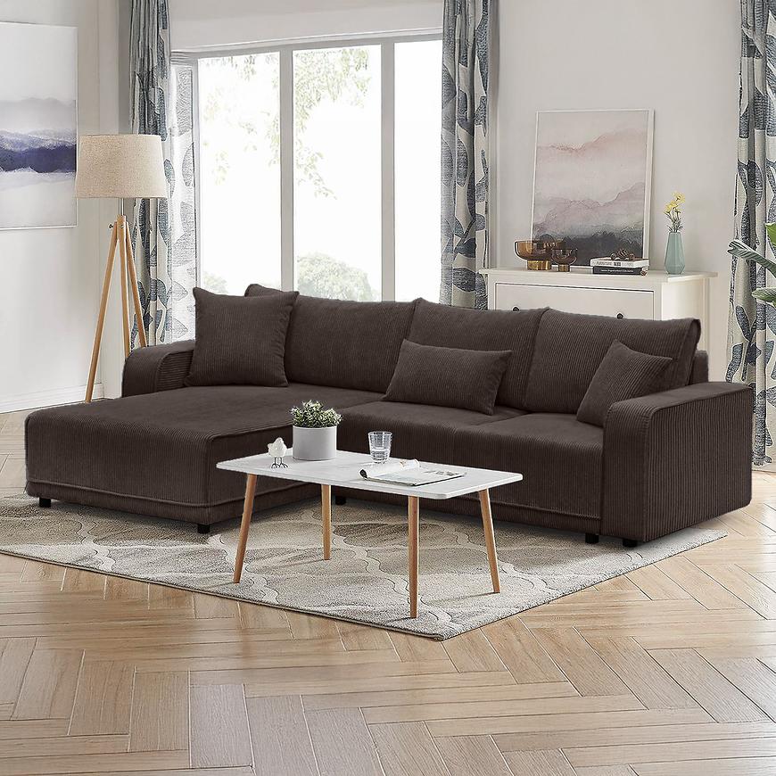 Narożnik Primo L Poso 06 w wersji lewostronnej to stylowy narożnik średniej wielkości w brązowej tkaninie, łączący funkcjonalność z komfortem. Wyposażony w funkcję spania DL oraz praktyczny pojemnik na pościel, sprawdzi się w codziennym użytkowaniu i podczas noclegów gości. Siedzisko z sprężyną falistą gwarantuje wygodę, a w zestawie znajdują się poduszki. Solidne nogi i trwała tapicerka zapewniają elegancki wygląd i wytrzymałość mebla.