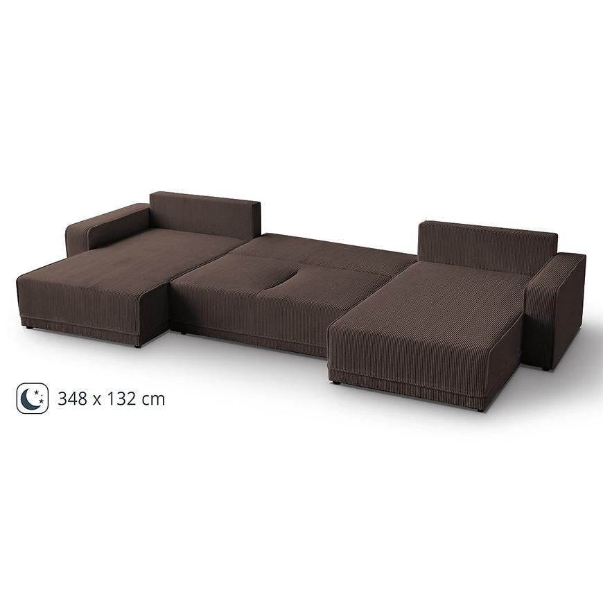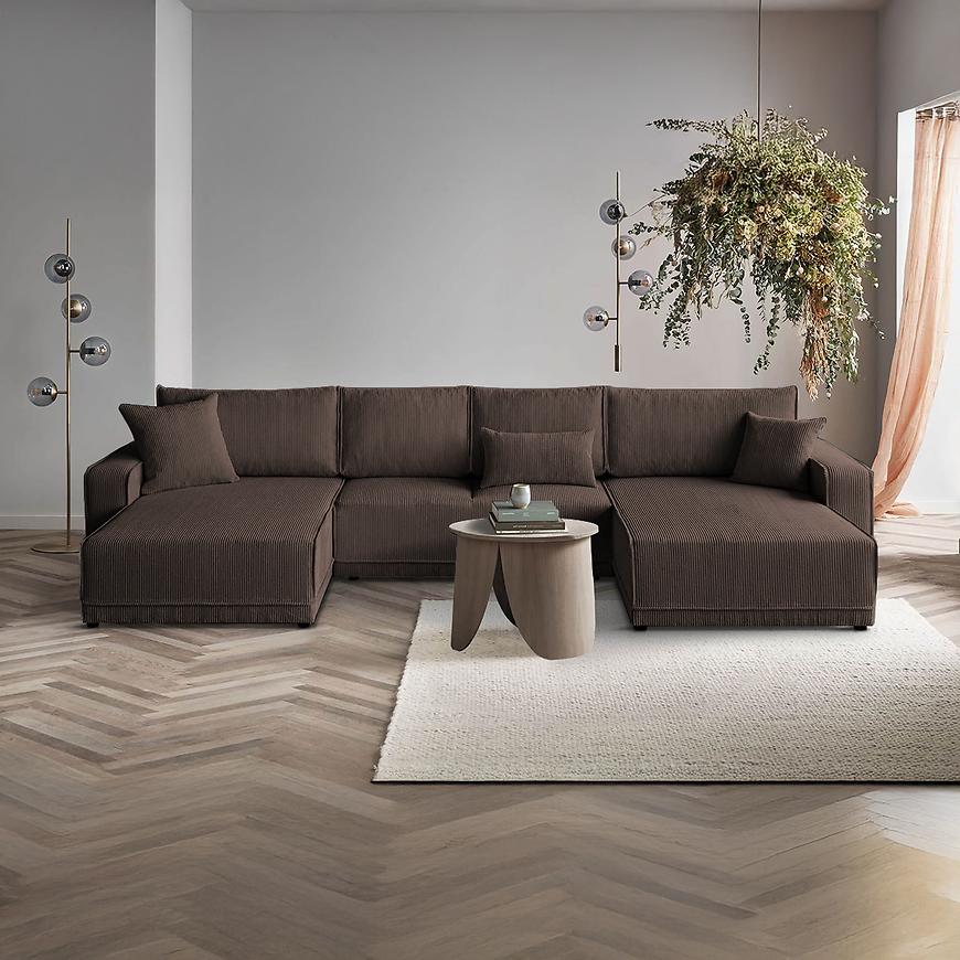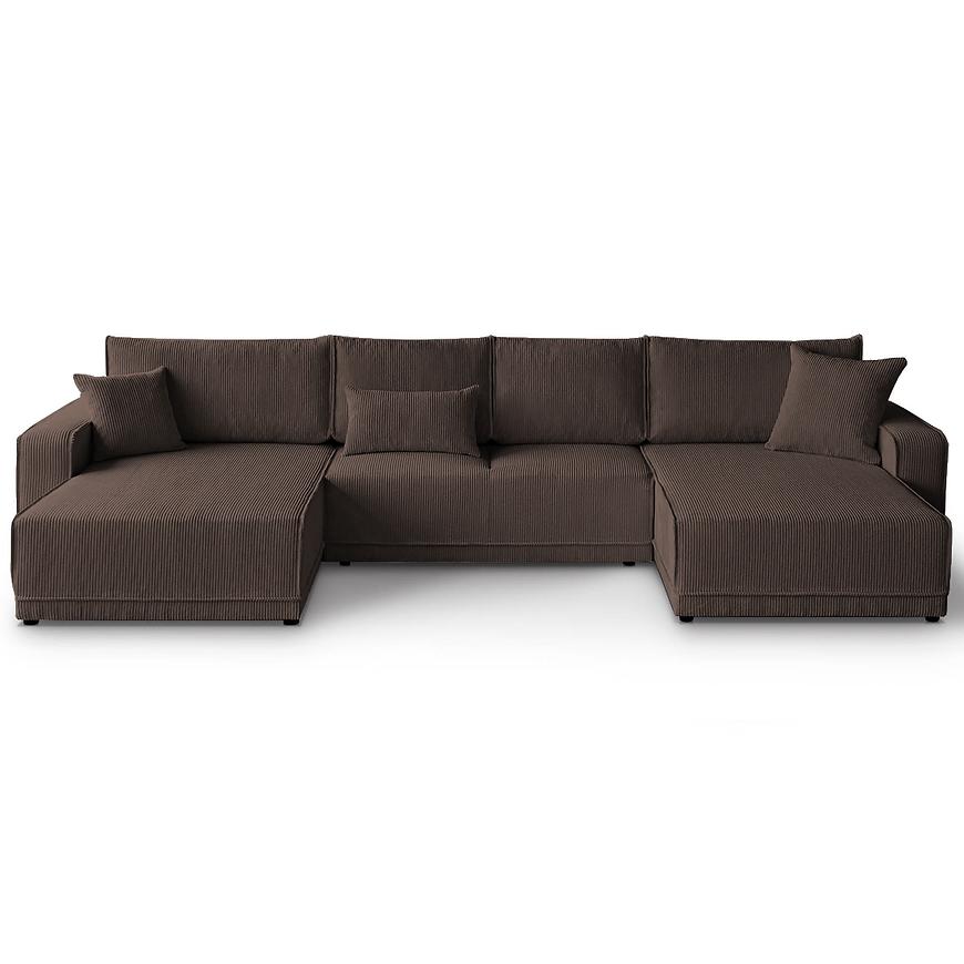 Narożnik Primo U Poso 06 w uniwersalnym układzie to bardzo duży narożnik w kształcie litery U, idealny do przestronnych salonów. Tapicerowany trwałą tkaniną w kolorze brązowym, z komfortowym siedziskiem wypełnionym sprężyną falistą. Wyposażony w funkcję spania ze sposobem rozkładania DL oraz pojemnik na pościel, łączy wygodę z praktycznym designem. Solidne nogi i poduszki w komplecie podkreślają elegancki wygląd narożnika. Mebel wymaga złożenia i stanowi centralny element salonu, zapewniając przestrzeń do relaksu dla całej rodziny.