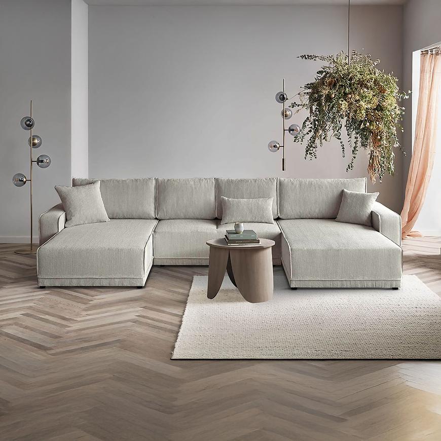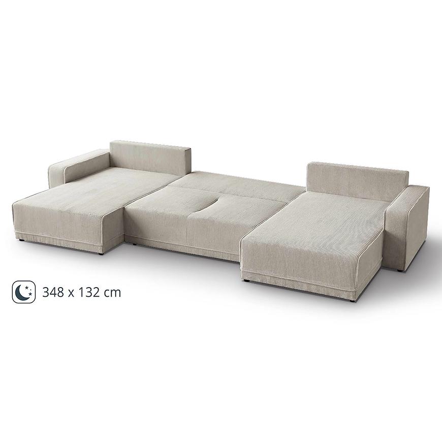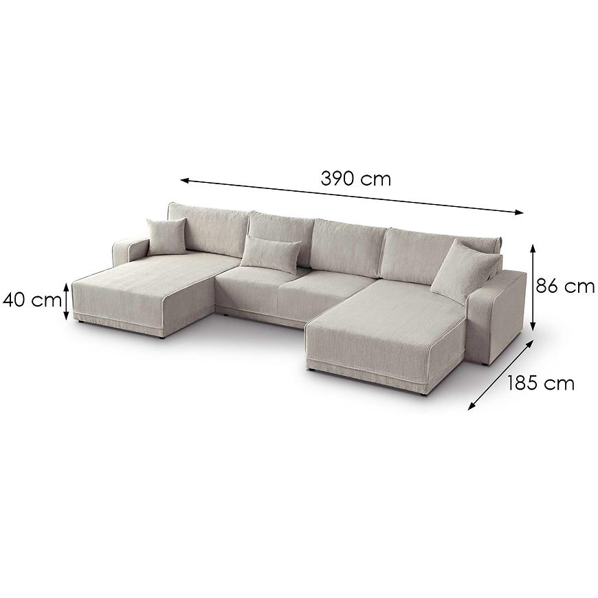 Narożnik Primo U Poso 100 w uniwersalnym układzie to bardzo duży narożnik w kształcie litery U, idealny do przestronnych salonów. Tapicerowany beżową tkaniną, z wygodnym siedziskiem wypełnionym sprężyną falistą. Wyposażony w funkcję spania z mechanizmem DL oraz pojemnik na pościel. Solidne nogi i poduszki w komplecie podkreślają elegancki wygląd. Mebel wymaga złożenia i zapewnia komfortową przestrzeń do odpoczynku dla całej rodziny.