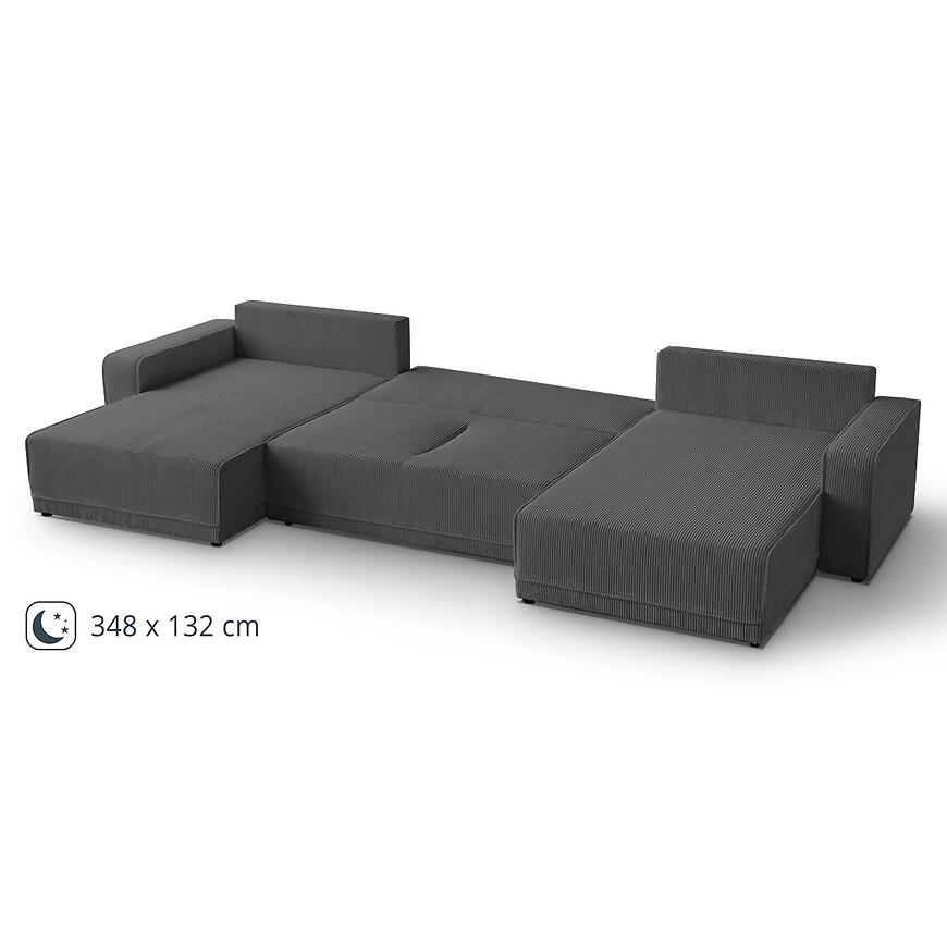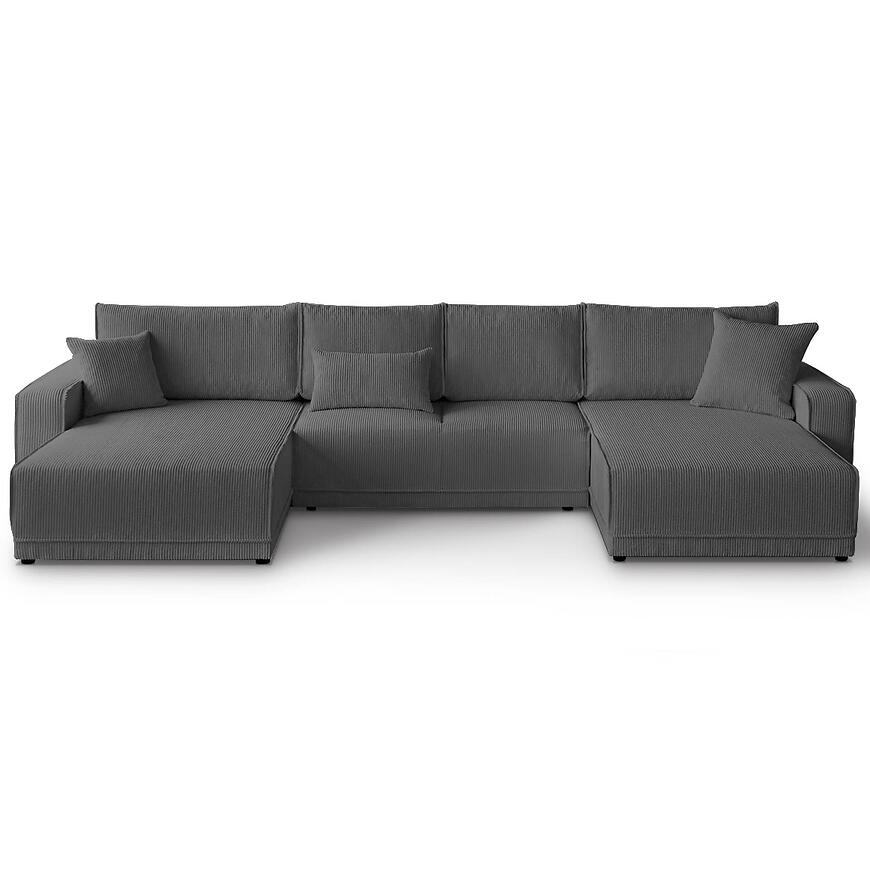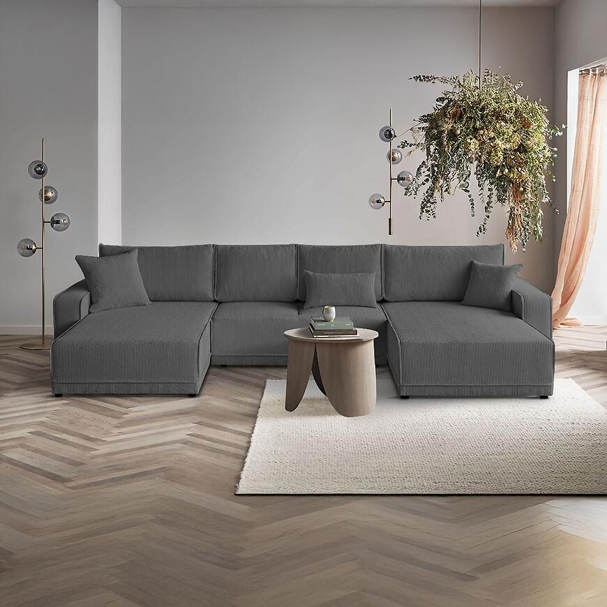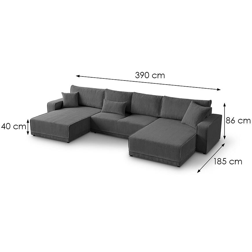 Narożnik Primo U Poso 34 w uniwersalnym układzie i eleganckim antracytowym kolorze to przestronny, komfortowy mebel w kształcie litery U, idealny do bardzo dużych salonów. Tapicerowany wysokiej jakości tkaniną, z siedziskiem wypełnionym sprężyną falistą, zapewnia wygodę i relaks podczas codziennego użytkowania. Wyposażony w funkcję spania ze sposobem rozkładania DL oraz pojemnik na pościel, łączy praktyczność z nowoczesnym designem. Solidne nogi i poduszki w zestawie podkreślają elegancki charakter narożnika. Mebel wymaga złożenia, jest uniwersalny i doskonale sprawdzi się jako centralny punkt salonu, gwarantując komfort dla całej rodziny.