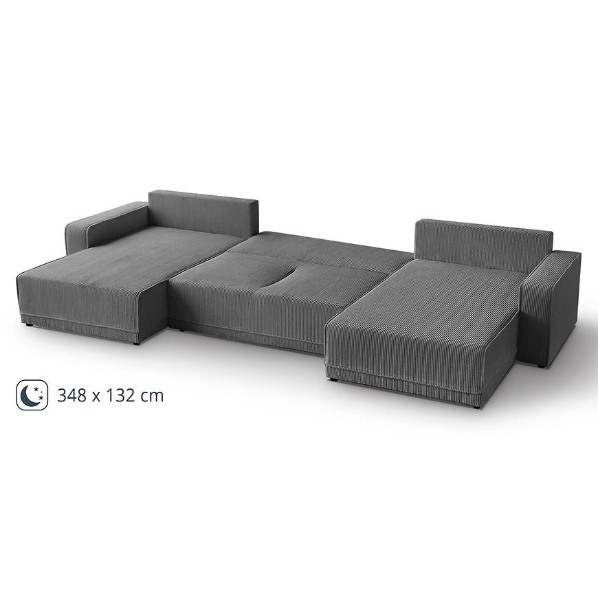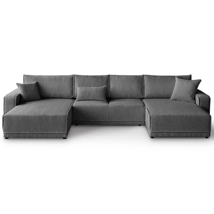 Narożnik Primo U Poso 60 w uniwersalnym układzie to bardzo duży narożnik w kształcie litery U, idealny do przestronnych salonów. Tapicerowany wytrzymałą tkaniną, z siedziskiem wypełnionym sprężyną falistą, zapewnia wygodę i komfort codziennego użytkowania. Wyposażony w funkcję spania ze sposobem rozkładania DL oraz pojemnik na pościel, łączy praktyczność z nowoczesnym designem. Solidne nogi i poduszki w komplecie podkreślają elegancki charakter narożnika. Mebel wymaga złożenia i stanowi centralny element salonu, oferując przestrzeń do relaksu dla całej rodziny.