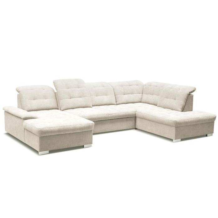 Kanapa narożna z kolekcji Reno jest w kształcie litery U i świetnie wpasuje się zarówno do pokoju dziennego jak i salonu.