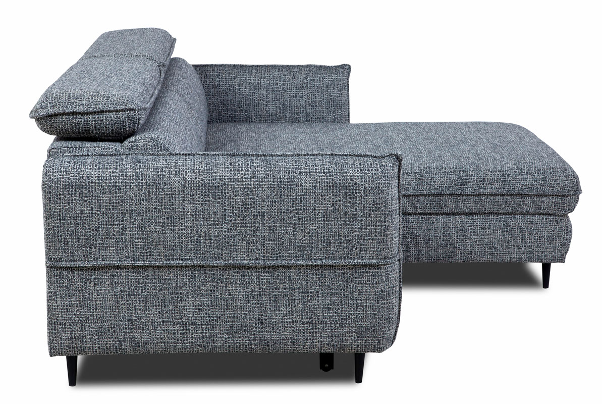 Duży narożnik Rocco to elegancja, wygoda i funkcjonalność. Model uniwersalny wykonany w tkaninie Coco 11 w kolorze popielatym. Narożnik rozkładany to mebel idealny dla rodzin, które cenią sobie wspólny wypoczynek na sofie. Nowoczesny narożnik z funkcją spania wyposażony w sprężyny faliste oraz wygodne oparcie zapewni wysoki komfort nawet najbardziej wymagającym miłośnikom wielogodzinnych drzemek. Dwa regulowane zagłówki to dodatkowy komfort podczas wypoczynku lub oglądania telewizji. Kanapa narożna z pojemnikiem oraz automatem wspomagającym rozkładanie to idealne rozwiązanie, które świetnie sprawdzi się w każdym domu. Sposób rozkładania Delfin. Po rozłożeniu powierzchnia spania wynosi 123x201 cm. W narożniku zastosowano nóżki drewniane w kolorze czarnym. Narożnik tapicerowany możesz ustawić w salonie lub innym pomieszczeniu. Meble wypoczynkowe wyposażone w funkcję spania to doskonały wybór na długie lata.