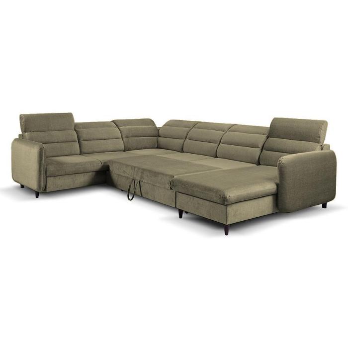 Narożnik Samos z funkcją spania został pokryty tkaniną . Prostotę i łatwość użytkowania gwarantuje system rozkładania typu delfin. Jest to szybki, prosty i wygodny sposób rozkładania. Jest jednym z najbardziej popularnych systemów rozkładania, który jest wykorzystywany w narożnikach. Po rozłożeniu to okazjonalne miejsce do spania o wymiarach 123x275 cm. Mebel posiada pojemnik, do którego można schować pościel, dodatkowe koce czy też poduszki. W siedzisku zastosowano sprężynę falistą, która dostosowuje się do ciężaru i kształtu ciała, zapewniając tym samym wysoki komfort siedzenia. Ten niepowtarzalny mebel wypoczynkowy stworzono z myślą o funkcjonalności i eleganckim wyglądzie. Narożnik dostępny w wersji prawostronnej i lewostronnej.