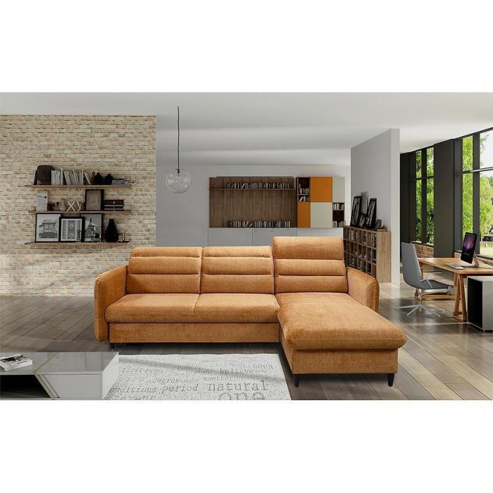 Sofa narożna Samos to najbardziej praktyczny mebel, który będzie pasował do salonu, ale znajdzie swoje miejsce również w innym pomieszczeniu. Nowoczesne narożniki rozkładane to doskonały wybór na długie lata. Funkcja spania to szczególnie ważne i świetne rozwiązanie, które zapewni miejsce snu w komfortowych warunkach. Po rozłożeniu to okazjonalne miejsce do spania o wymiarach 125x210 cm. Samos posiada jeden pojemnik na pościel, a system rozkładania typu delfin to szybki, prosty i wygodny sposób rozkładania.