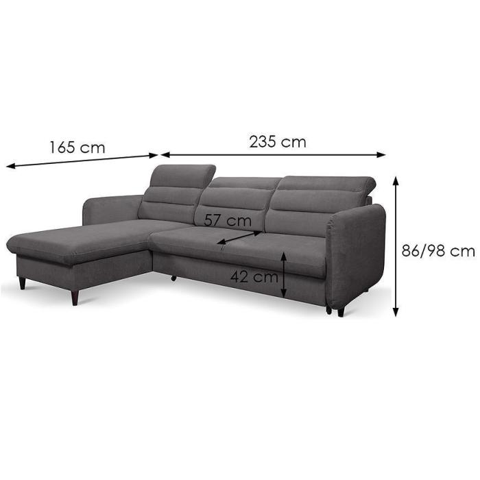 Sofa narożna Samos to najbardziej praktyczny mebel, który będzie pasował do salonu, ale znajdzie swoje miejsce również w innym pomieszczeniu. Nowoczesne narożniki rozkładane to doskonały wybór na długie lata. Funkcja spania to szczególnie ważne i świetne rozwiązanie, które zapewni miejsce snu w komfortowych warunkach. Po rozłożeniu to okazjonalne miejsce do spania o wymiarach 125x210 cm. Samos posiada jeden pojemnik na pościel, a system rozkładania typu delfin to szybki, prosty i wygodny sposób rozkładania.