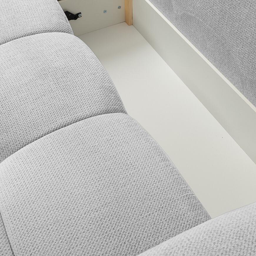 Pod siedziskiem znajduje się jeden pojemny schowek na pościel, który pozwala przechowywać kołdry, poduszki i koce, utrzymując porządek w salonie i maksymalizując wykorzystanie przestrzeni.