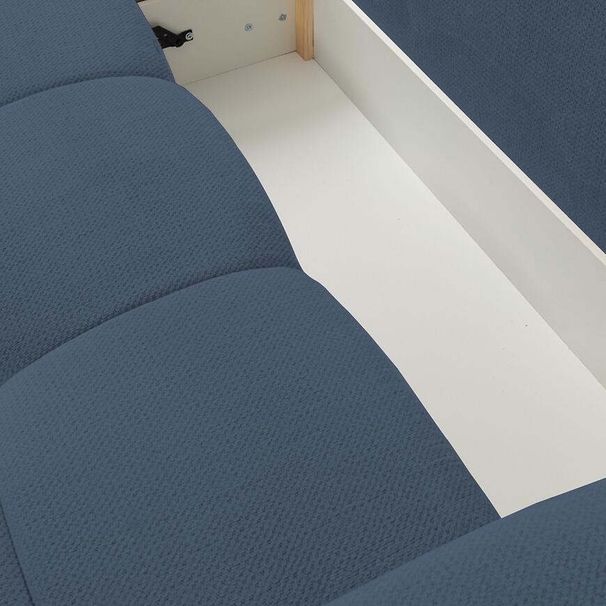 Pod siedziskiem znajduje się jeden pojemny schowek na pościel, idealny do przechowywania kołder, poduszek czy koców. Rozwiązanie to ułatwia utrzymanie porządku w salonie i pozwala maksymalnie wykorzystać przestrzeń.