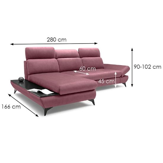 Dodatkowym atutem tego modelu jest funkcjonalna półka, która sprawia, że narożnik nie tylko spełnia rolę mebla do siedzenia czy spania, ale także pełni funkcję praktycznej przestrzeni do przechowywania czy eksponowania ulubionych przedmiotów.