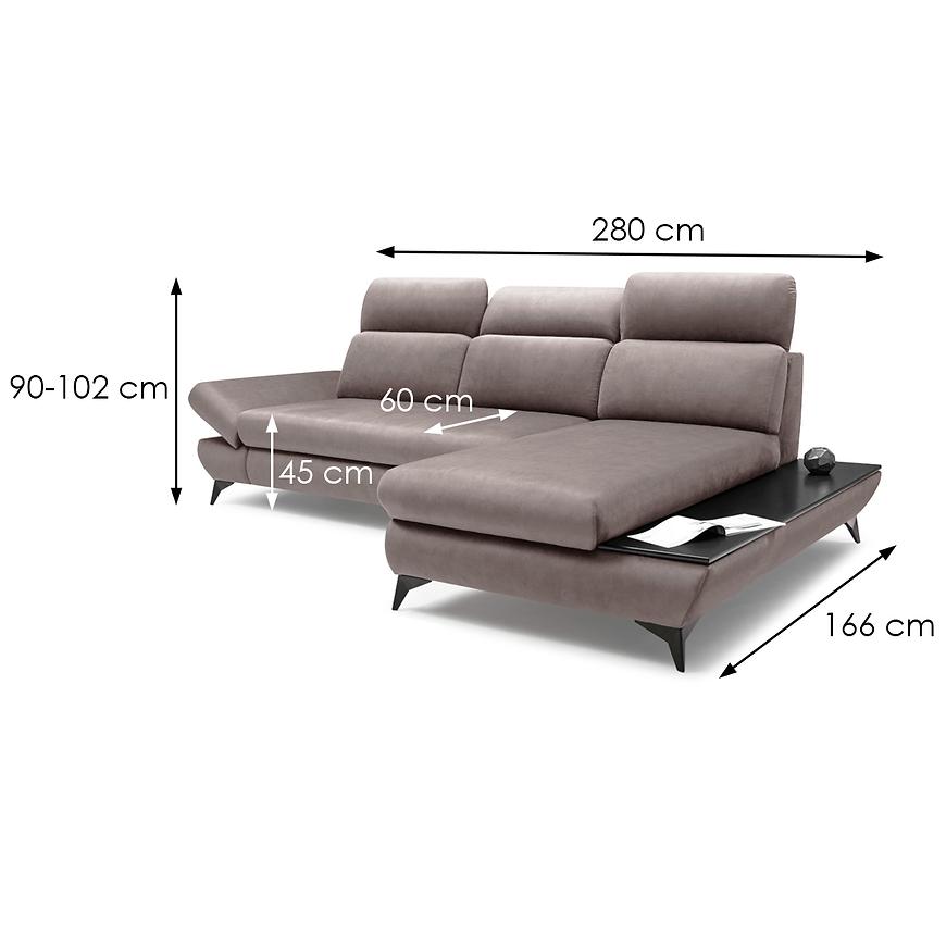 Dodatkowym atutem tego modelu jest funkcjonalna półka, która sprawia, że narożnik nie tylko spełnia rolę mebla do siedzenia czy spania, ale także pełni funkcję praktycznej przestrzeni do przechowywania czy eksponowania ulubionych przedmiotów.