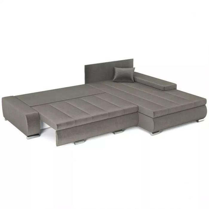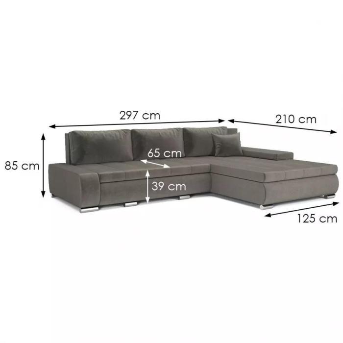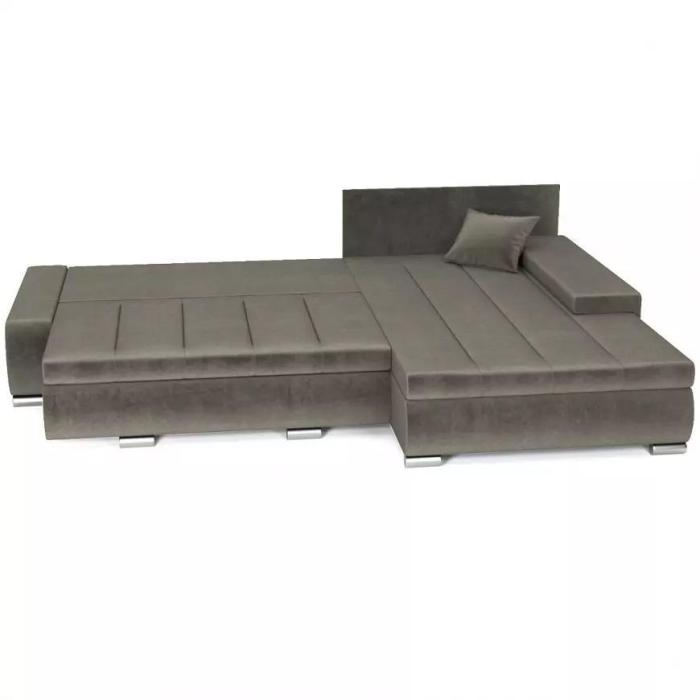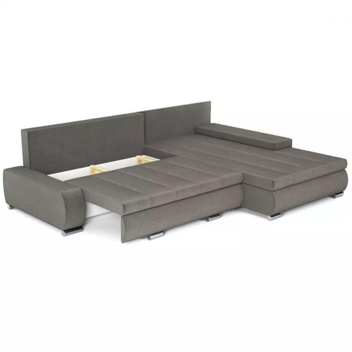 Sposób rozkładania to popularny DL, pomaga szybko i bezproblemowo przekształcić narożnik w przestronne łóżko. Rozkładanie typu DL jest najczęściej spotykane w narożnikach i kanapach, to bardzo prosty system rozkładania - należy lekko podnieść siedzisko do góry, przesunąć do przodu, opacie kładziemy w powstałą wolna przestrzeń w miejscu siedziska. Dzięki automatowi DL uzyskujemy równa powierzchnię spania. Po rozłożeniu to okazjonalne miejsce do spania o wymiarach 150x255 cm. Pościel można schować do pojemnika, zapewniając ład i porządek w pomieszczeniu.