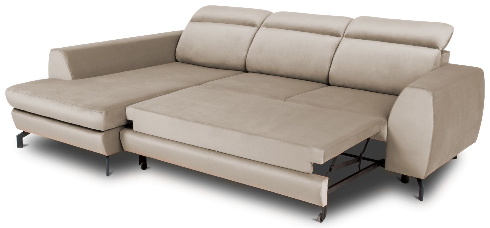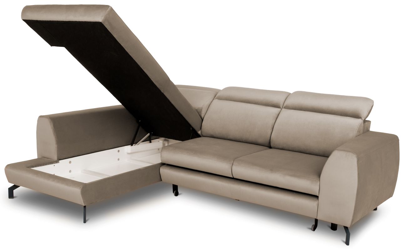 Duży narożnik Tybet to elegancja, wygoda i funkcjonalność. Narożnik rozkładany to mebel idealny dla rodzin, które cenią sobie wspólny wypoczynek na sofie. Nowoczesny narożnik z funkcją spania wyposażony w sprężyny faliste oraz wygodne oparcie zapewni wysoki komfort nawet najbardziej wymagającym miłośnikom wielogodzinnych drzemek. Regulowane zagłówki to dodatkowy komfort podczas wypoczynku lub oglądania telewizji. Kanapa narożna z pojemnikiem to idealne rozwiązanie, które świetnie sprawdzi się w każdym domu. Narożnik tapicerowany możesz ustawić w salonie lub innym pomieszczeniu. Meble wypoczynkowe wyposażone w funkcję spania to doskonały wybór na długie lata.