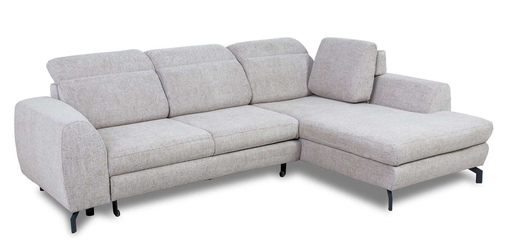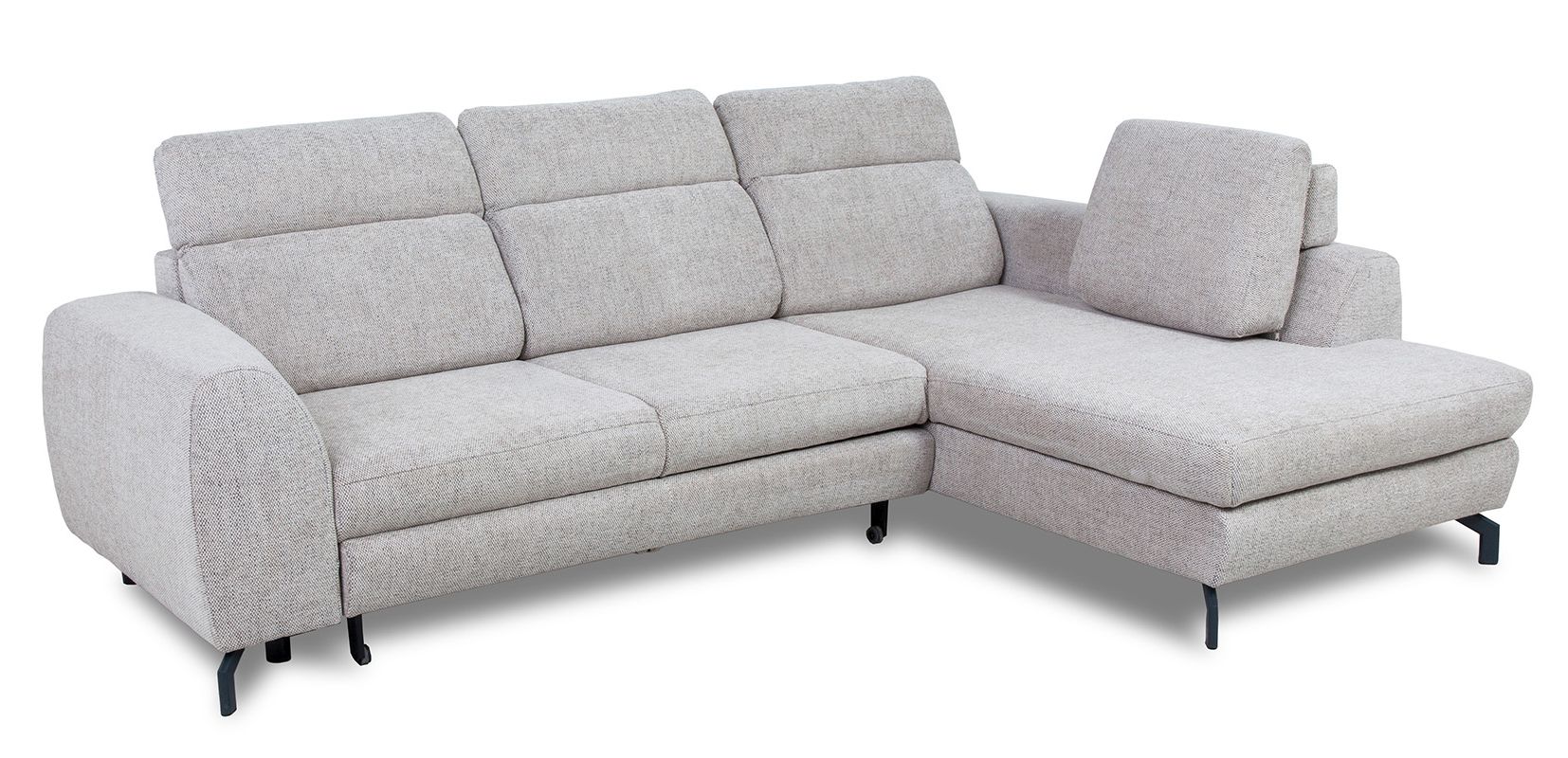 Model Tybet Lux to narożnik lewostronny, który doskonale dopasuje się do układu wnętrza. Całość osadzona jest na metalowych nóżkach w kolorze czarnym o wysokości 10 cm, co nie tylko nadaje mu lekkości i nowoczesnego charakteru, ale także ułatwia utrzymanie czystości pod meblem.