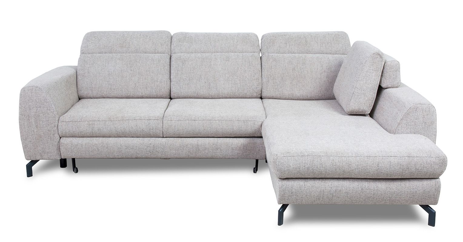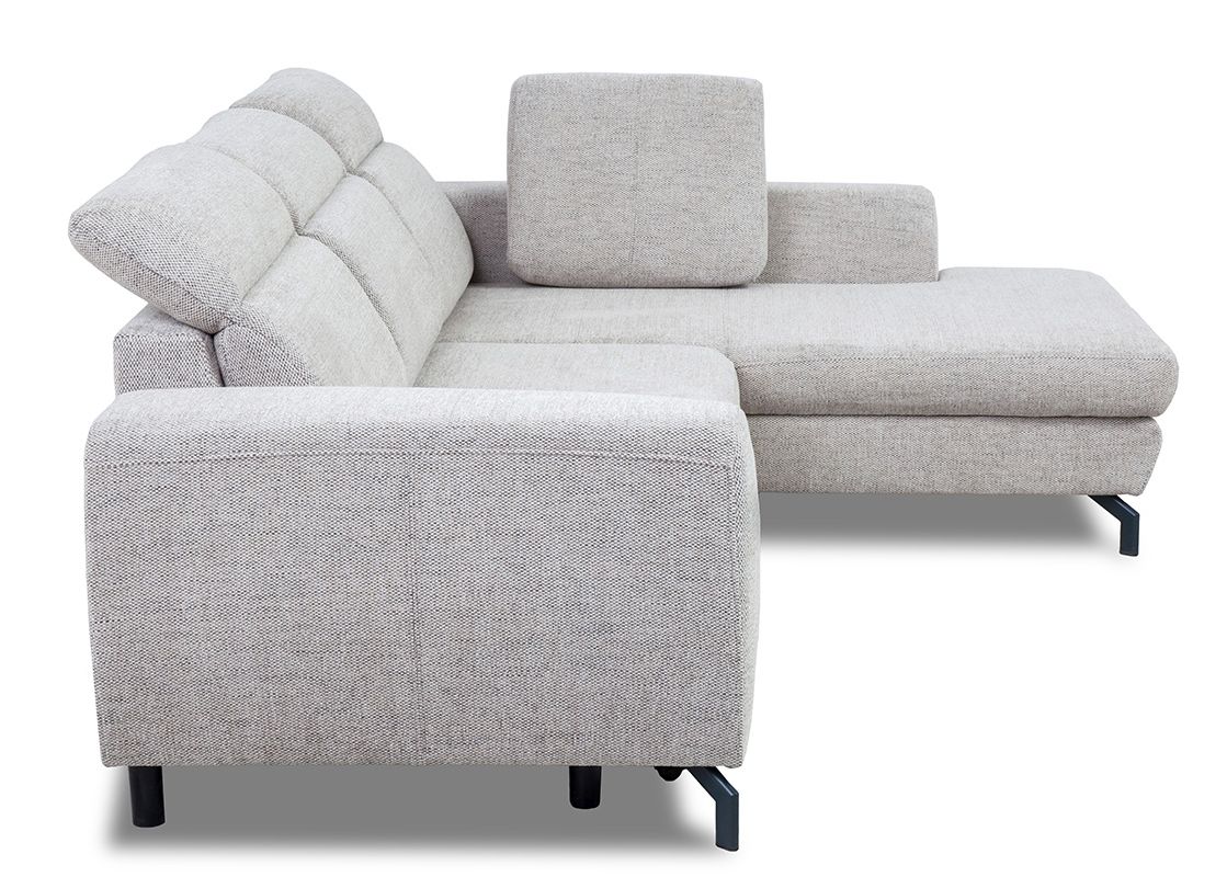 Model Tybet Lux to narożnik lewostronny, który doskonale dopasuje się do układu wnętrza. Całość osadzona jest na metalowych nóżkach w kolorze czarnym o wysokości 10 cm, co nie tylko nadaje mu lekkości i nowoczesnego charakteru, ale także ułatwia utrzymanie czystości pod meblem.