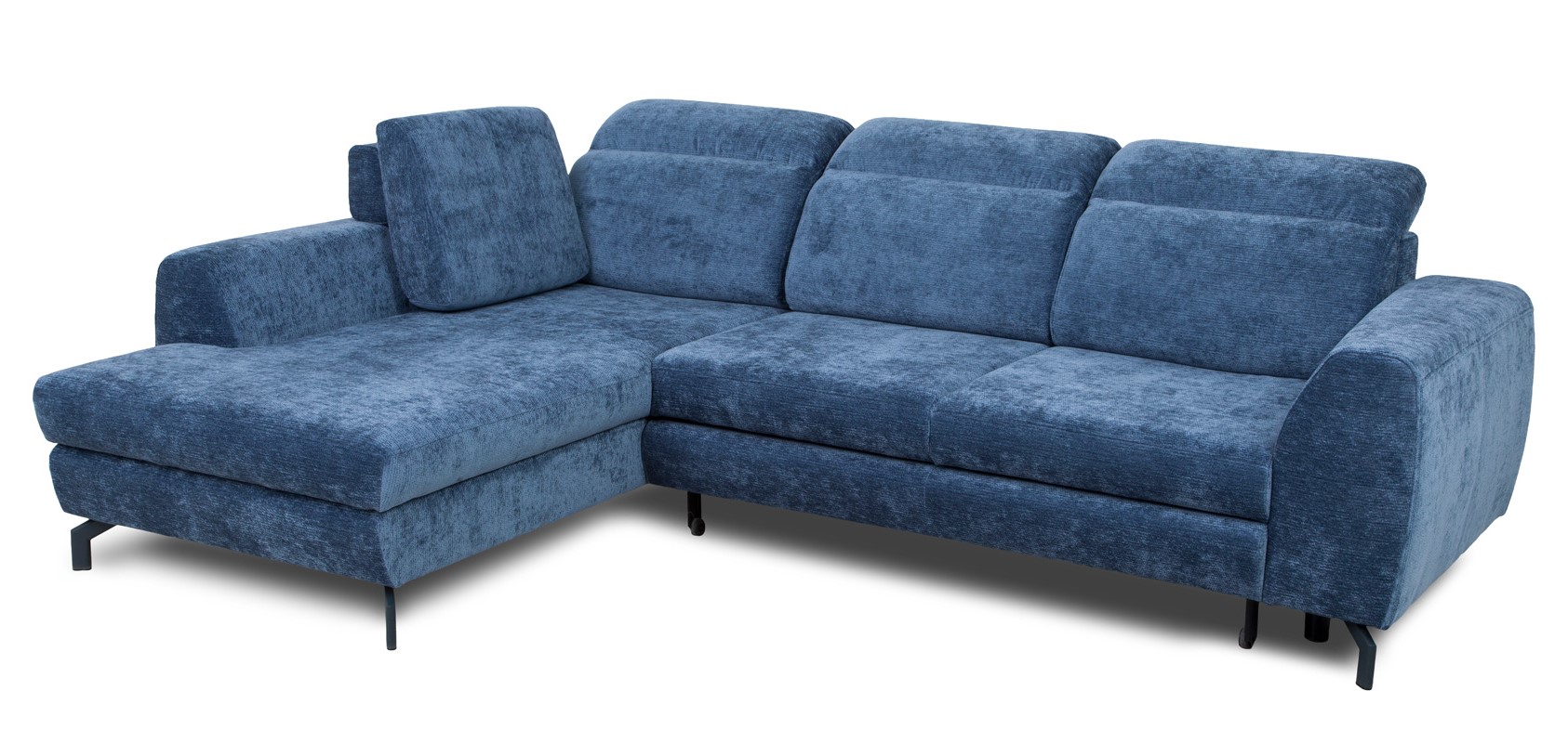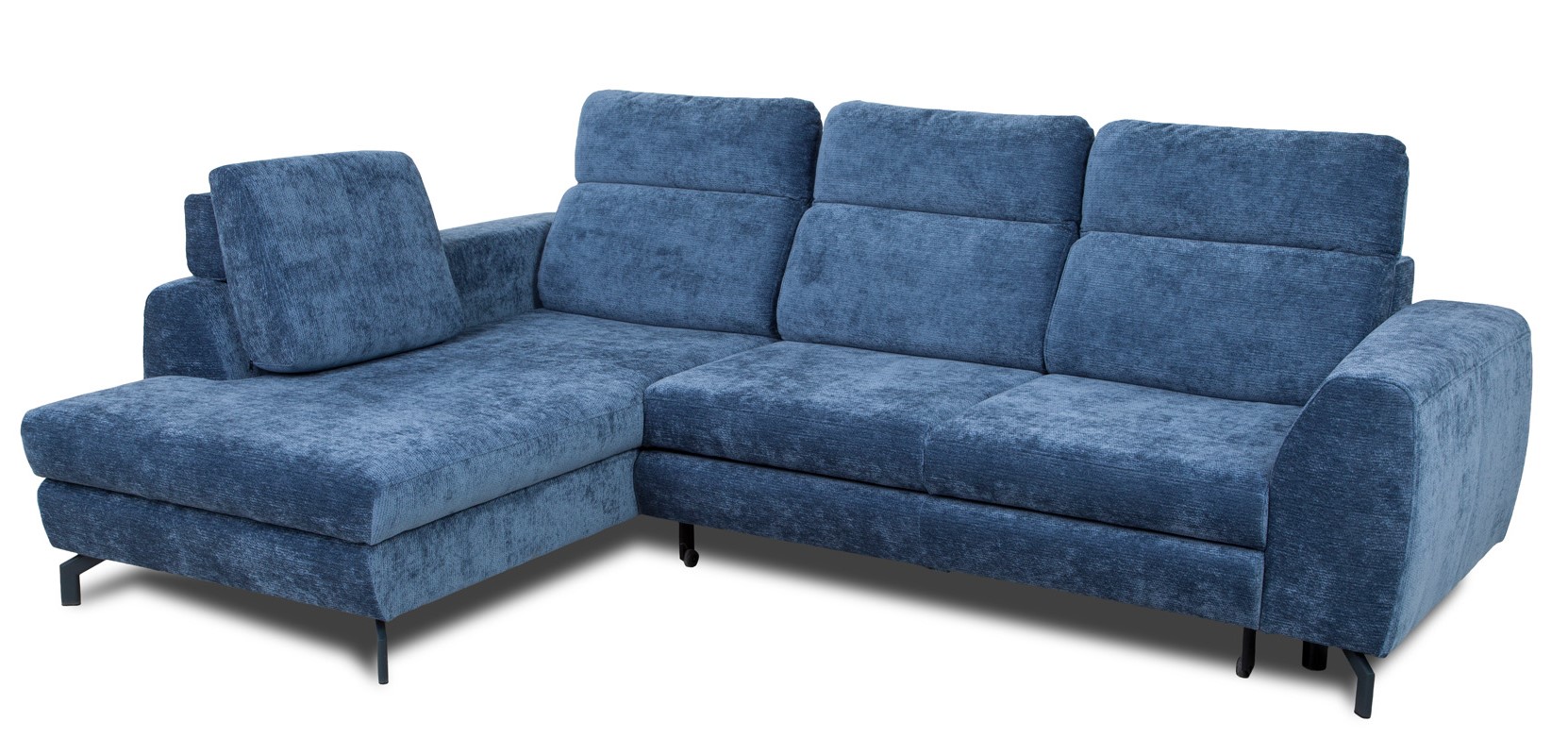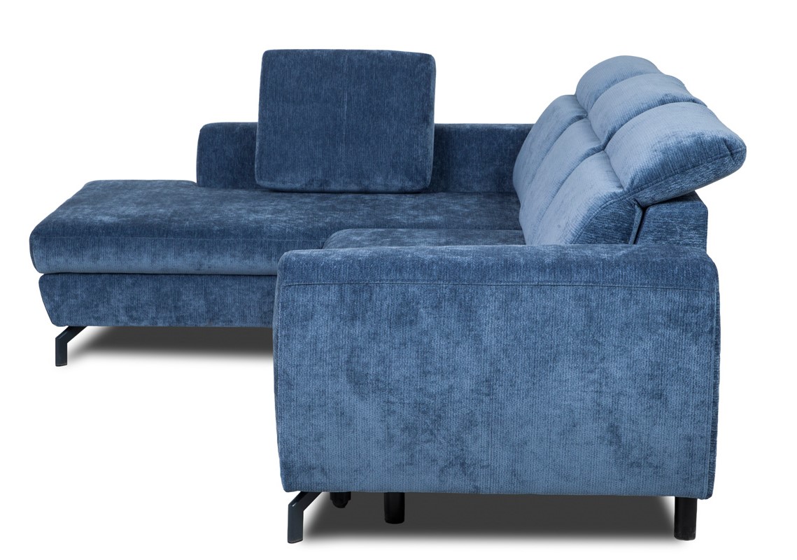 Regulowane zagłówki i ruchoma poduszka – narożnik z funkcją spania Tybet niebieski dla wymagających użytkowników