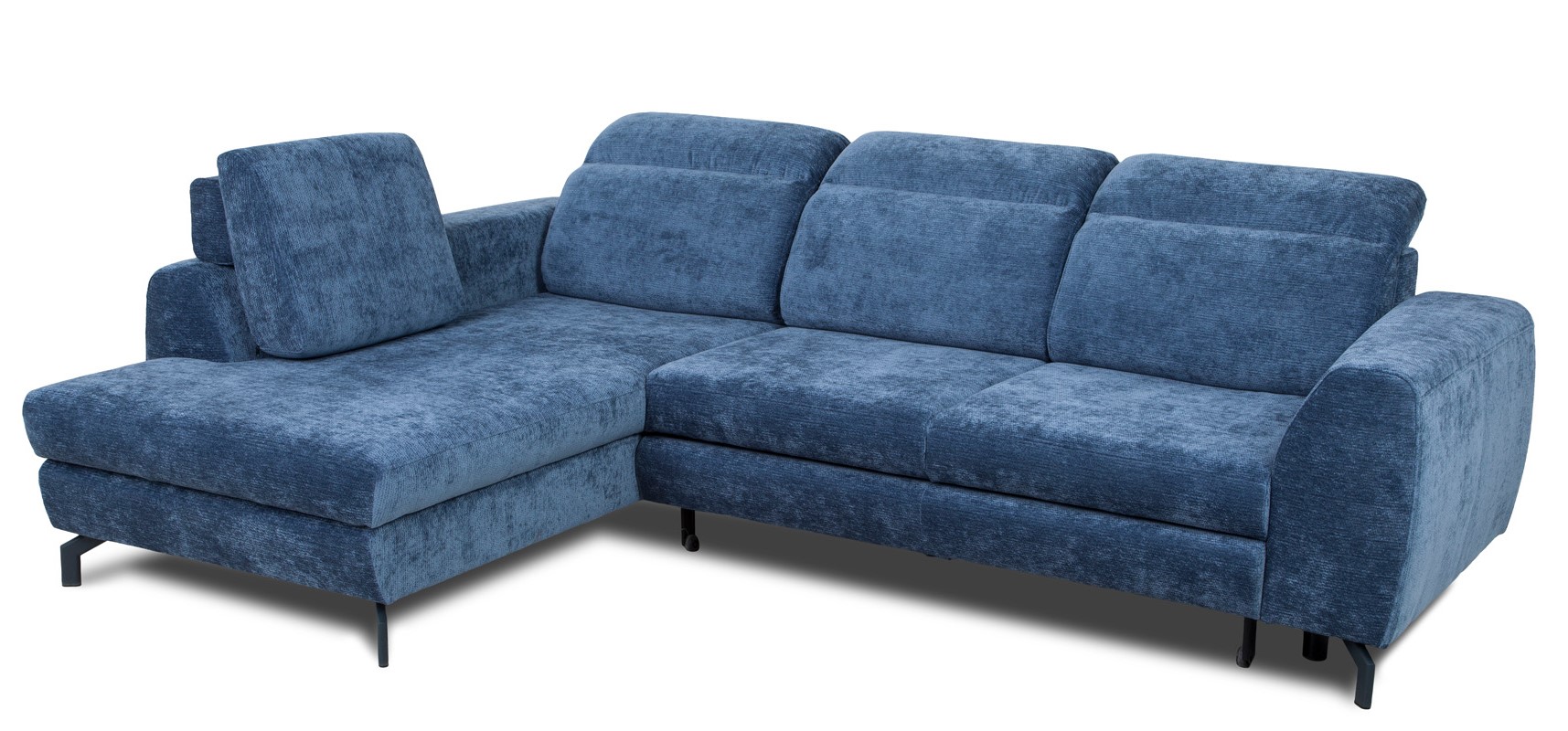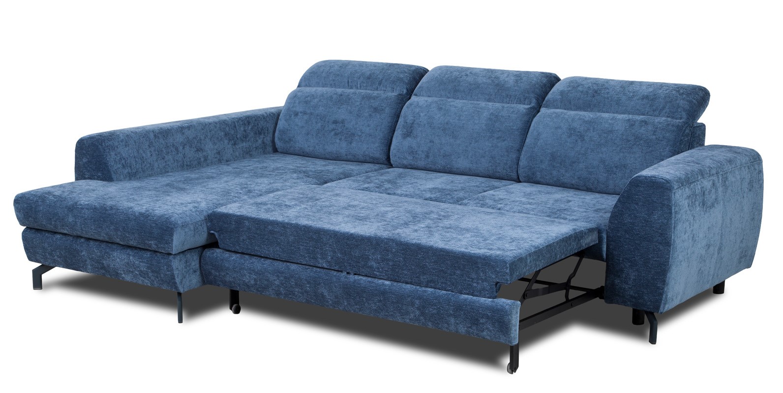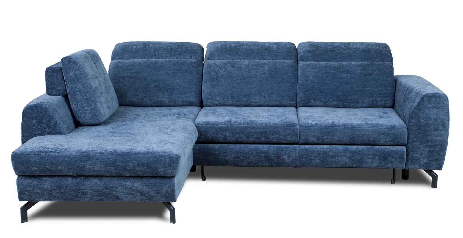 Regulowane zagłówki i ruchoma poduszka – narożnik z funkcją spania Tybet niebieski dla wymagających użytkowników