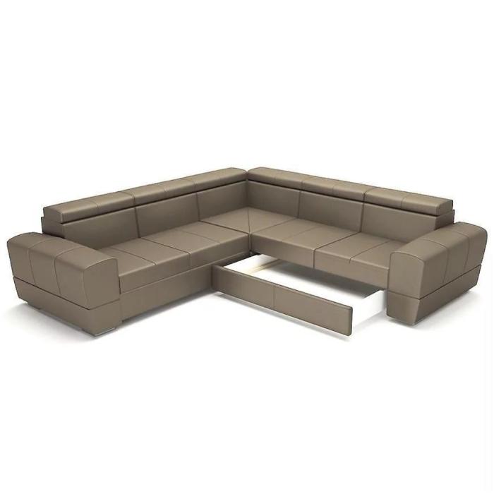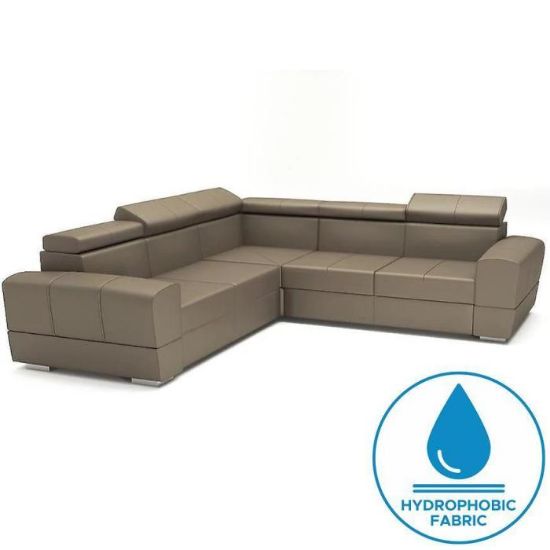Narożnik Vento z funkcją spania został pokryty tkaniną hydrofobową. Prostotę i łatwość użytkowania gwarantuje system rozkładania typu DL. Jest to szybki, prosty i wygodny sposób rozkładania. Jest jednym z najbardziej popularnych systemów rozkładania, który jest wykorzystywany w narożnikach. Po rozłożeniu powierzchnia spania wynosi 200x125 cm. Mebel posiada pojemnik, do którego można schować pościel, dodatkowe koce czy też poduszki. W siedzisku zastosowano sprężynę falistą i pianką, która dostosowuje się do ciężaru i kształtu ciała, zapewniając tym samym wysoki komfort siedzenia. Ten niepowtarzalny mebel wypoczynkowy stworzono z myślą o funkcjonalności i eleganckim wyglądzie. Narożnik dostępny w wersji prawostronnej i lewostronnej.