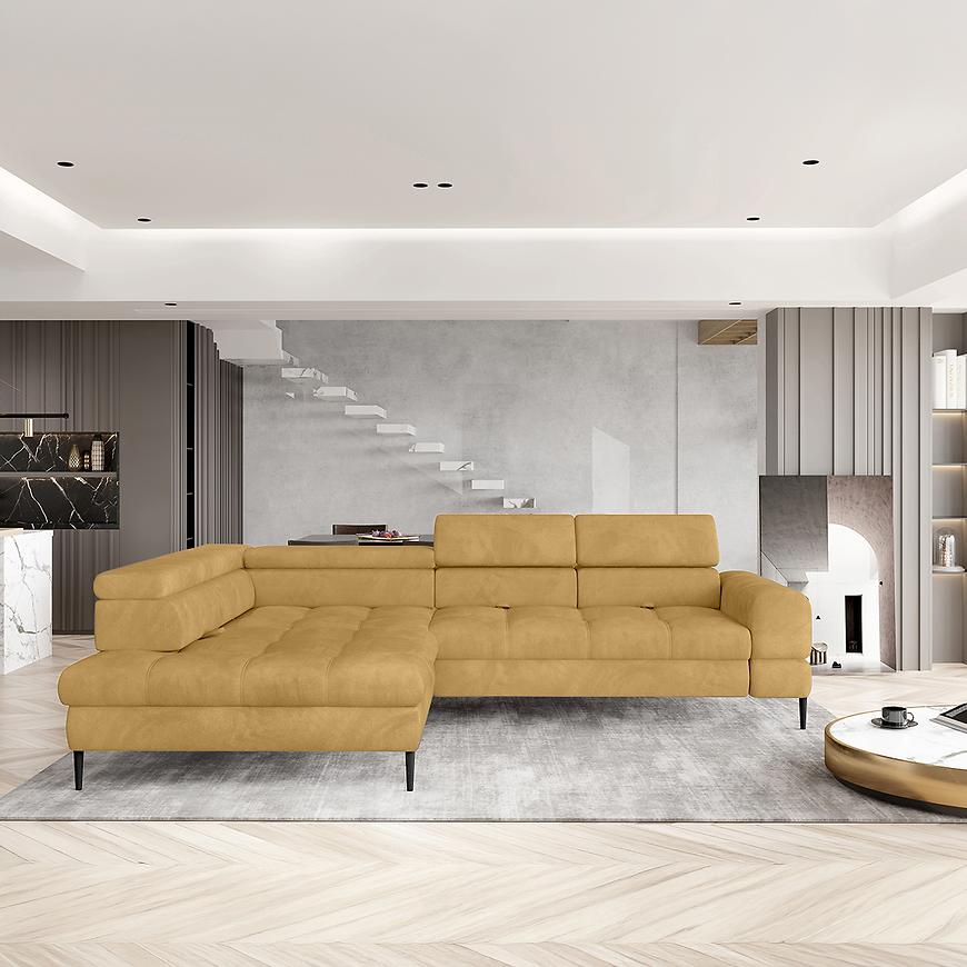 Narożnik Voss w kolorze musztardowym to idealne rozwiązanie do salonu, który ma być zarówno miejscem relaksu, jak i spotkań z bliskimi.