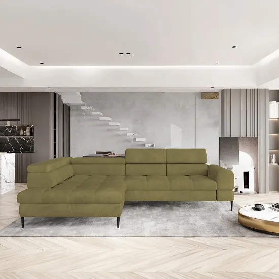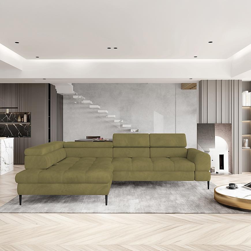 Narożnik Voss w kolorze zielonym to idealne rozwiązanie do salonu, który ma być zarówno miejscem relaksu, jak i spotkań z bliskimi.