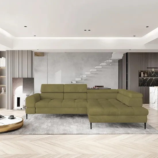 Narożnik Voss w kolorze zielonym to idealne rozwiązanie do salonu, który ma być zarówno miejscem relaksu, jak i spotkań z bliskimi.