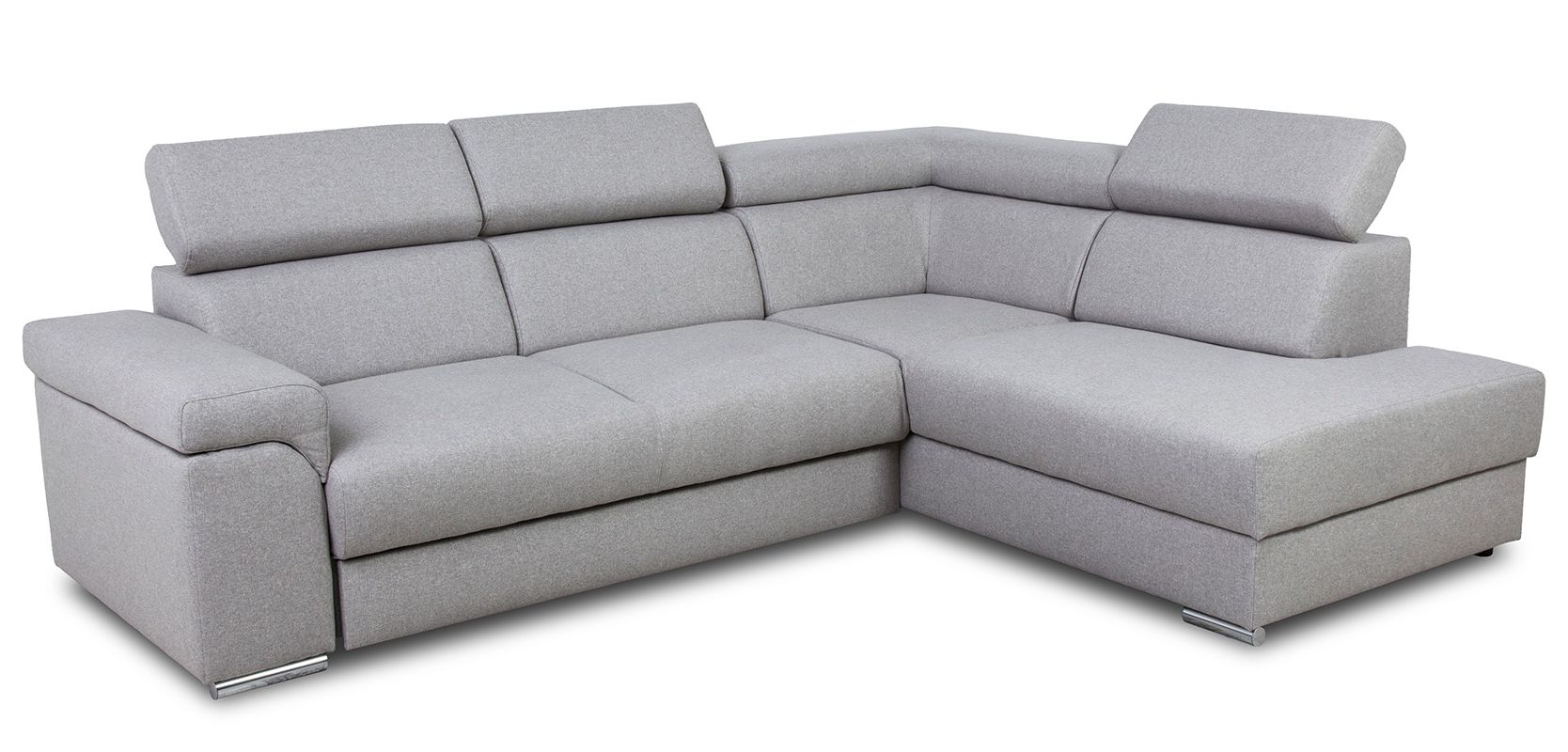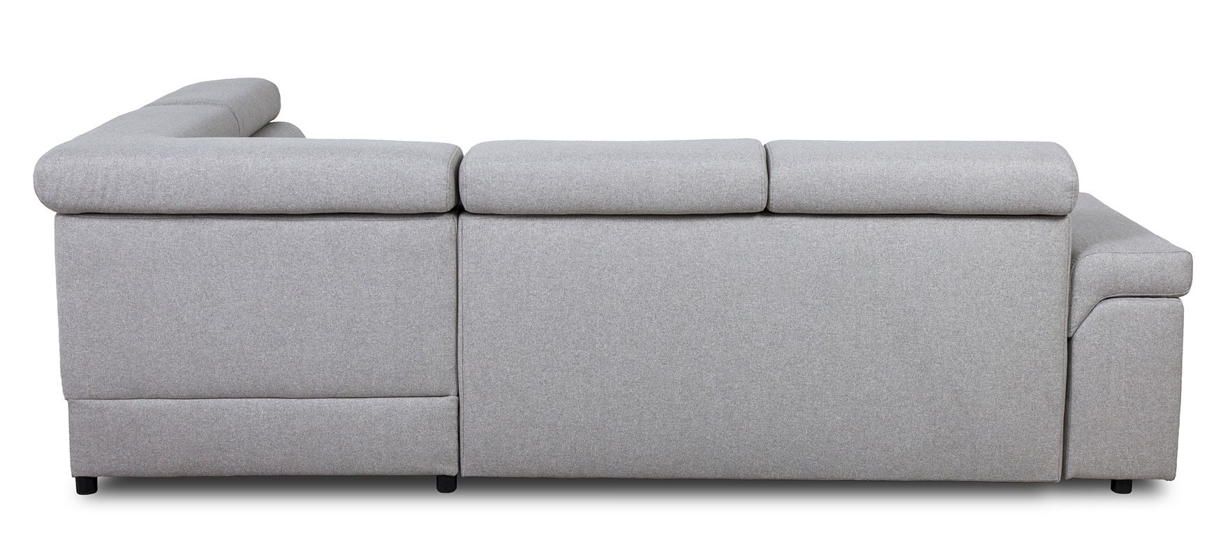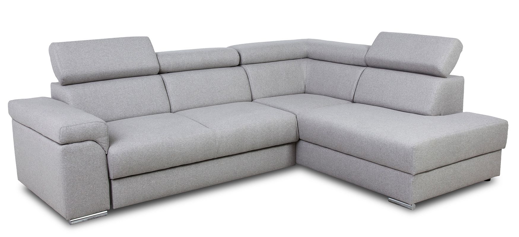Narożnik Wersal wyróżnia się także trzema regulowanymi zagłówkami na oparciach, które pozwalają dostosować narożnik do własnych preferencji i zapewnić optymalne podparcie dla głowy i szyi. Metalowe nóżki w kolorze chrom dodają meblowi elegancji i lekkości, jednocześnie zapewniając stabilność i wytrzymałość konstrukcji.