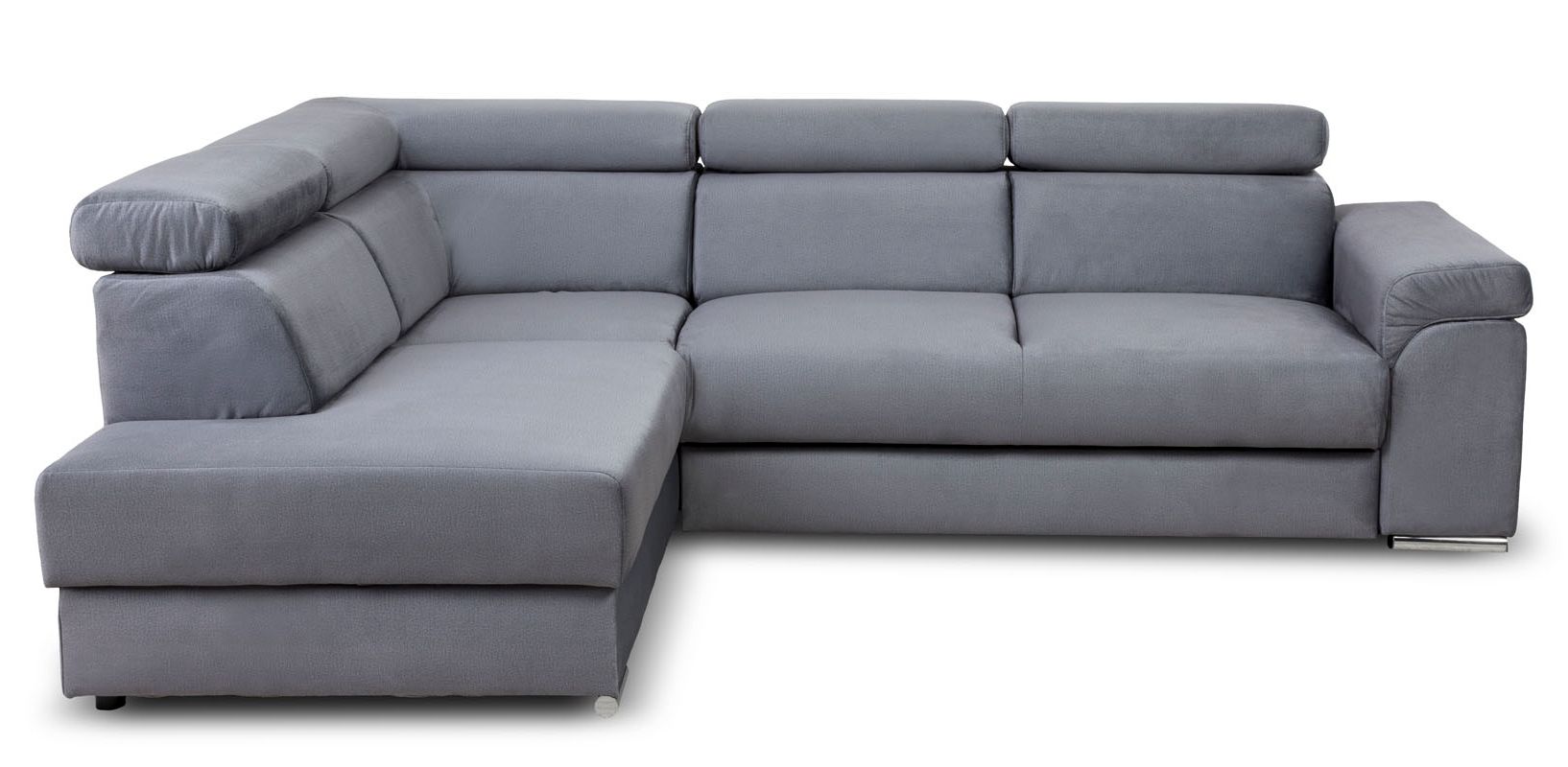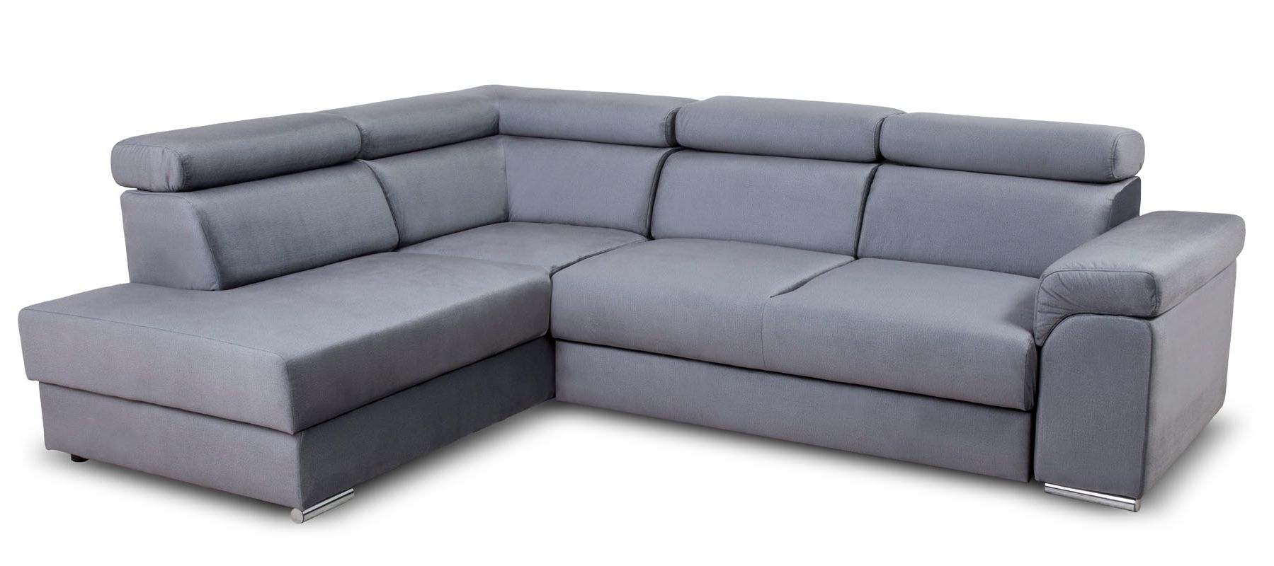 Narożnik Wersal wyróżnia się także trzema regulowanymi zagłówkami na oparciach, które pozwalają dostosować narożnik do własnych preferencji i zapewnić optymalne podparcie dla głowy i szyi. Metalowe nóżki w kolorze chrom dodają meblowi elegancji i lekkości, jednocześnie zapewniając stabilność i wytrzymałość konstrukcji.
