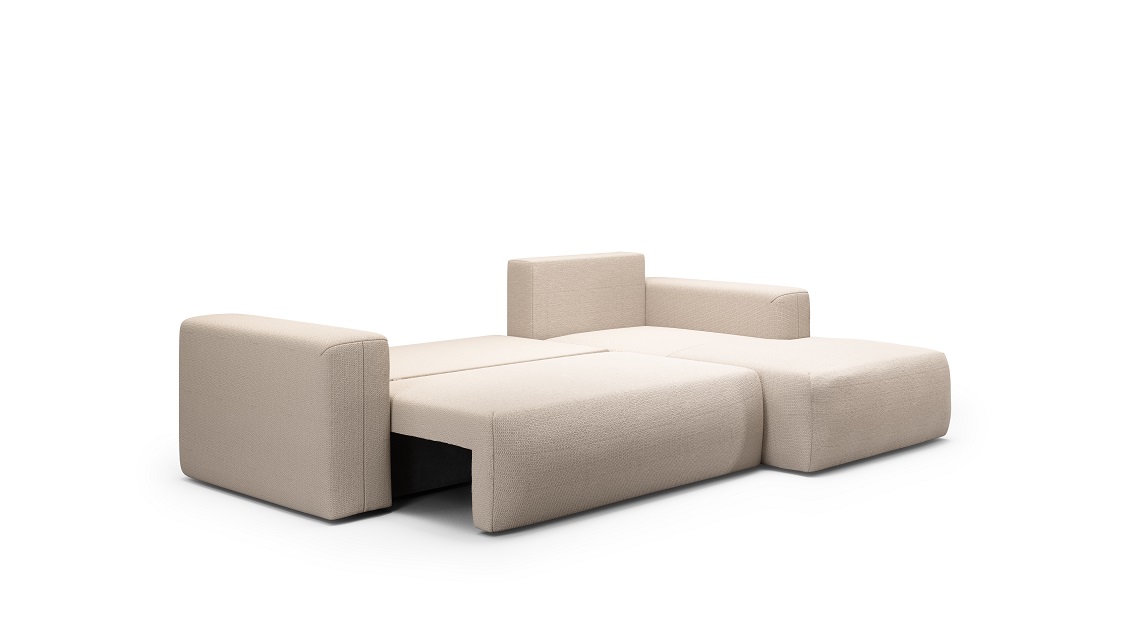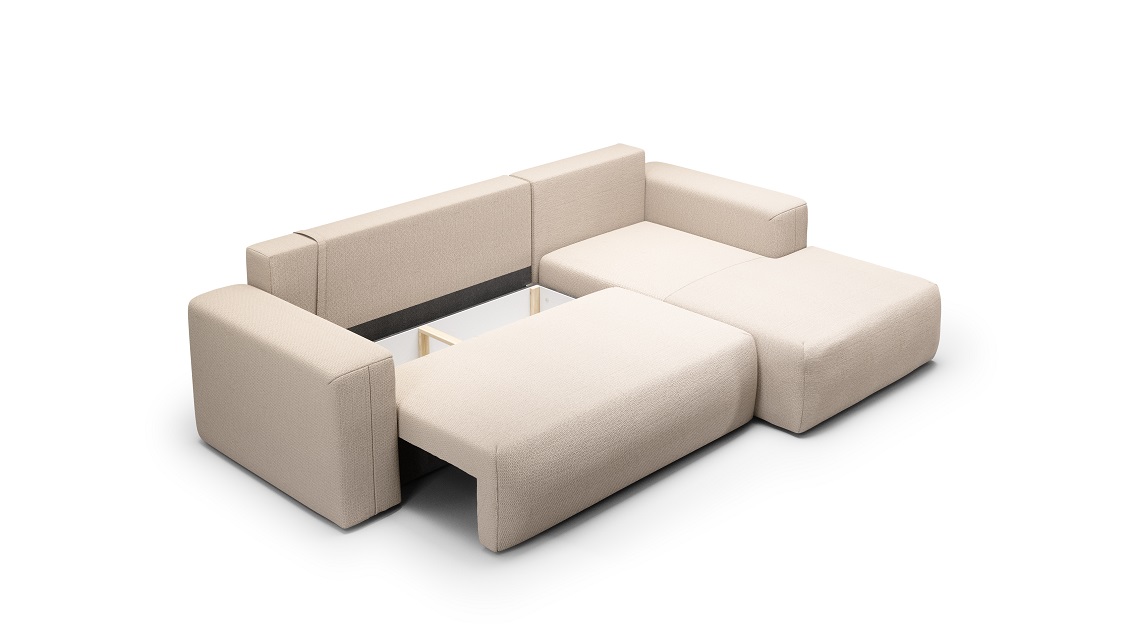 Automatyczny system rozkładania automat DL sprawia, że przekształcenie narożnika w dodatkowe miejsce do spania jest szybkie i wygodne. Tył mebla tapicerowany pozwala na dowolne umieszczenie go w pomieszczeniu, nie tylko przy ścianie.