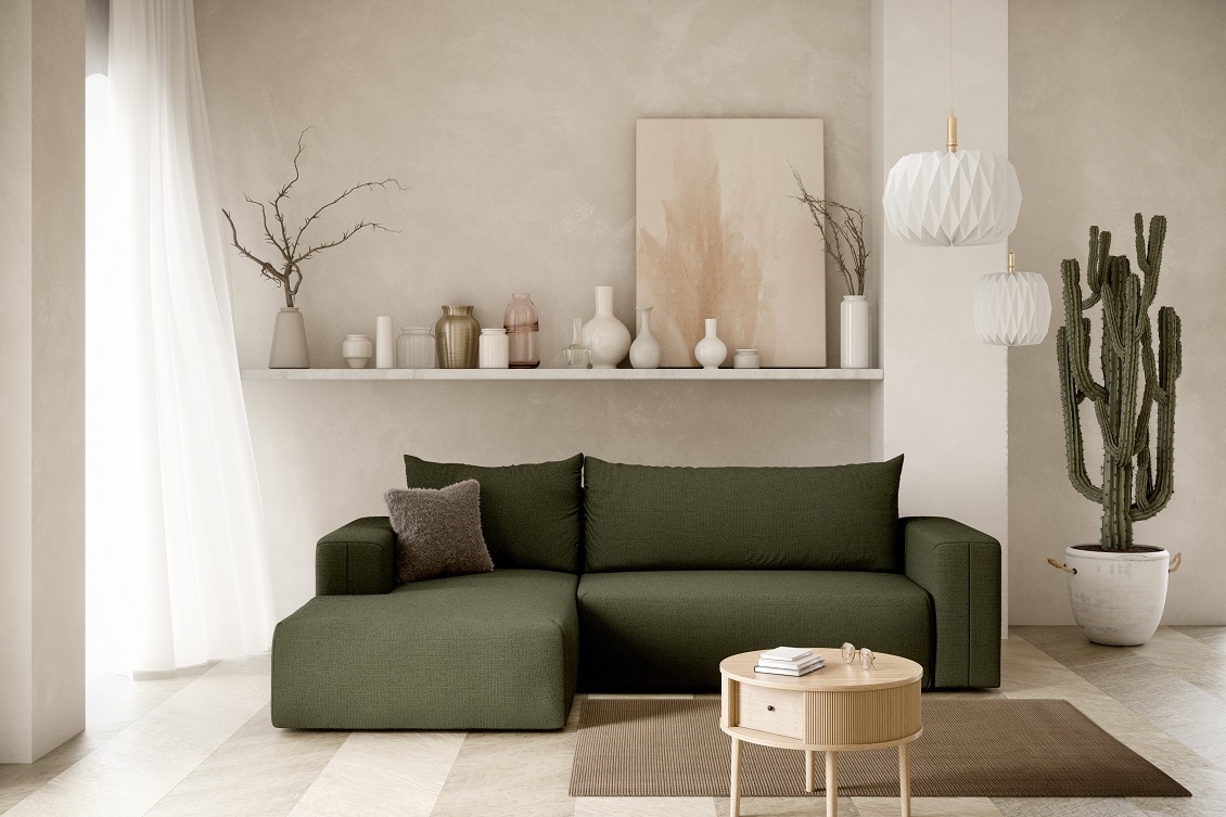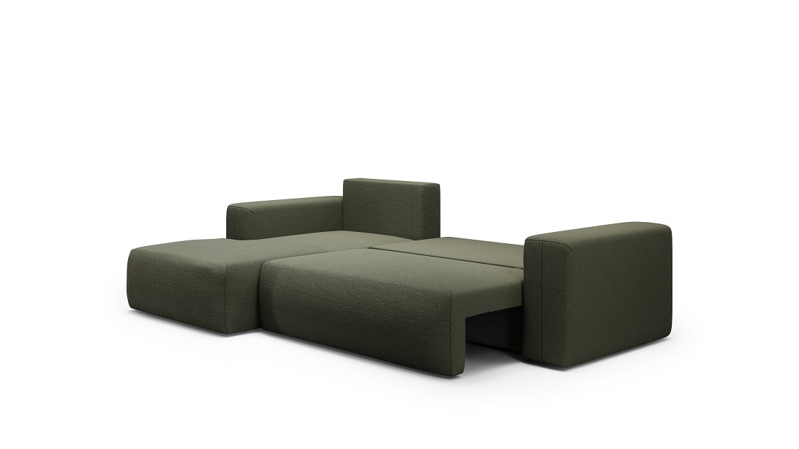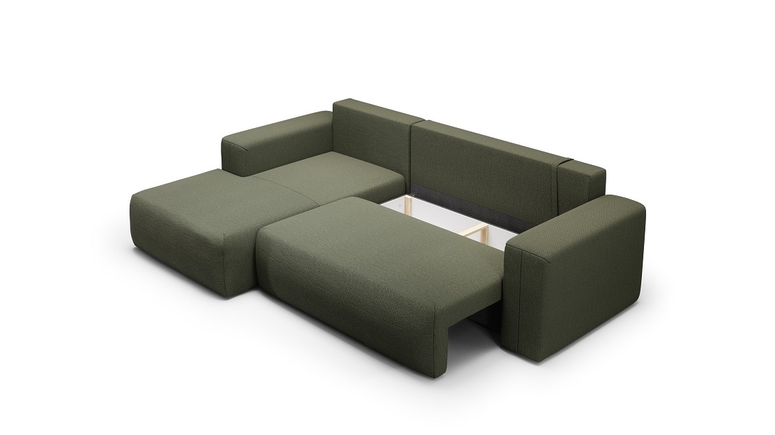 Automatyczny system rozkładania automat DL sprawia, że przekształcenie narożnika w dodatkowe miejsce do spania jest szybkie i wygodne. Tył mebla tapicerowany pozwala na dowolne umieszczenie go w pomieszczeniu, nie tylko przy ścianie.