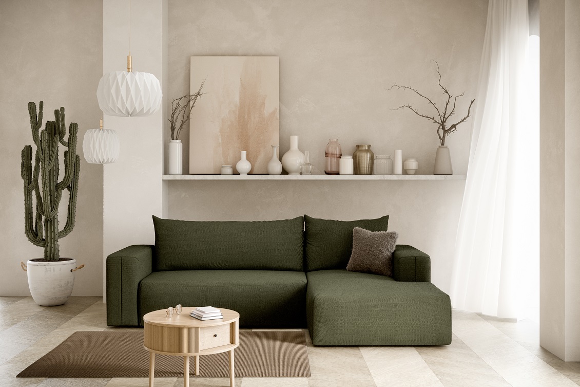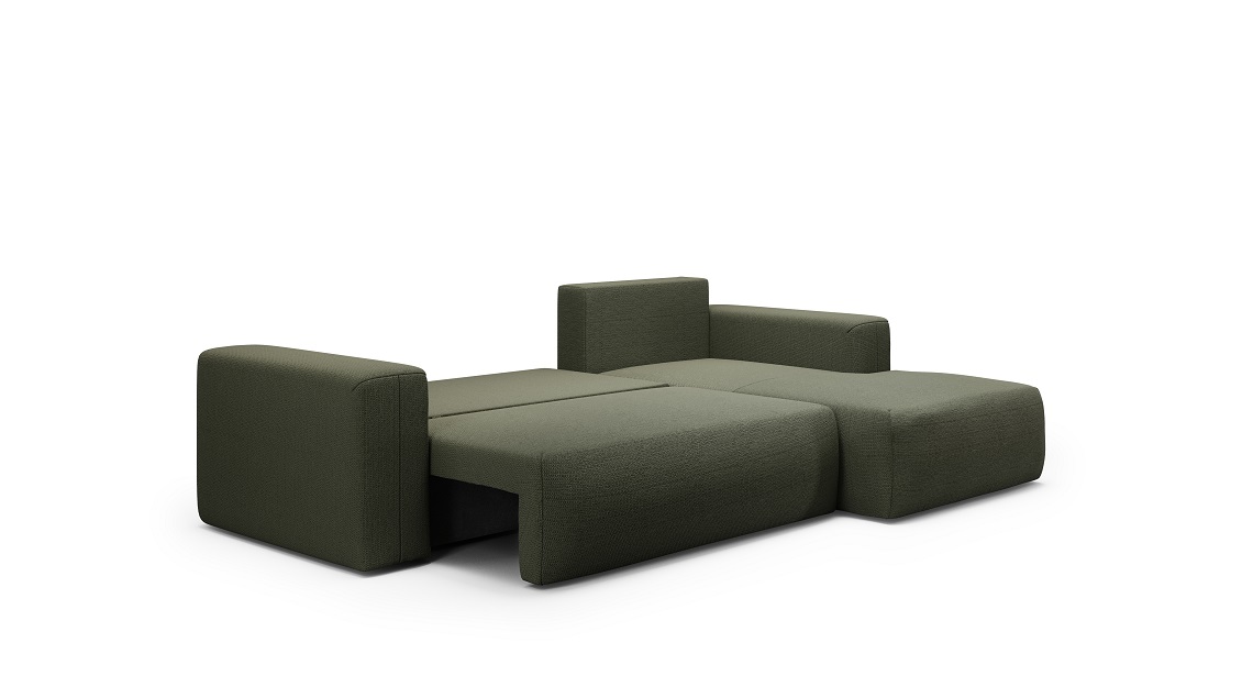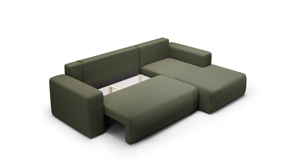 Automatyczny system rozkładania automat DL sprawia, że przekształcenie narożnika w dodatkowe miejsce do spania jest szybkie i wygodne. Tył mebla tapicerowany pozwala na dowolne umieszczenie go w pomieszczeniu, nie tylko przy ścianie.