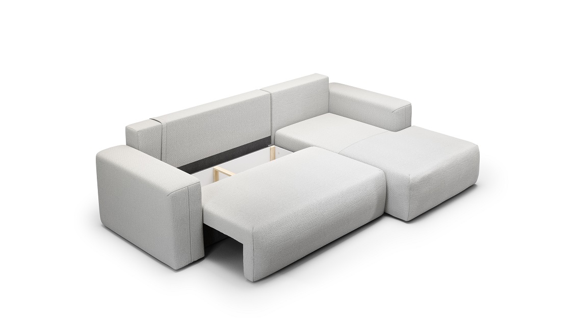 Automatyczny system rozkładania automat DL sprawia, że przekształcenie narożnika w dodatkowe miejsce do spania jest szybkie i wygodne. Tył mebla tapicerowany pozwala na dowolne umieszczenie go w pomieszczeniu, nie tylko przy ścianie.